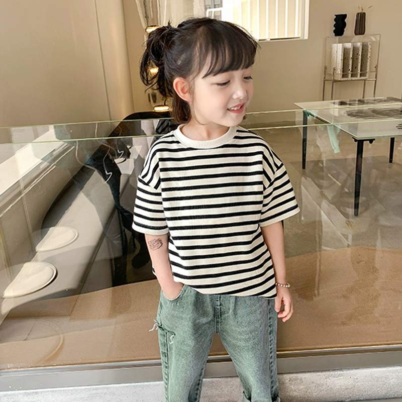 | nameOriginal | Girls short-sleeved parent-child wear children's pure cotton T-shirt 2024 new fashion baby half-sleeved summer striped top trendy |