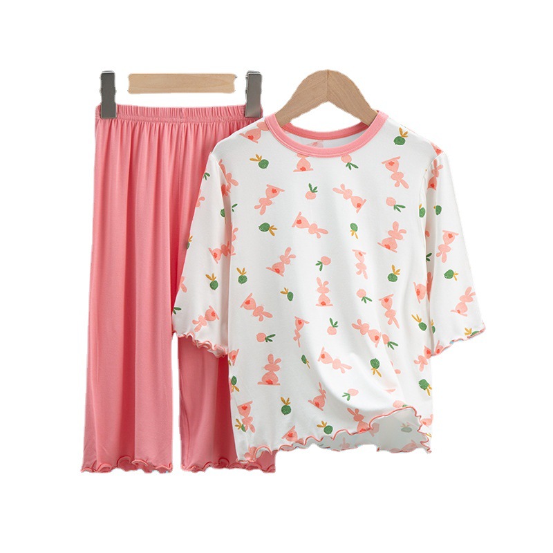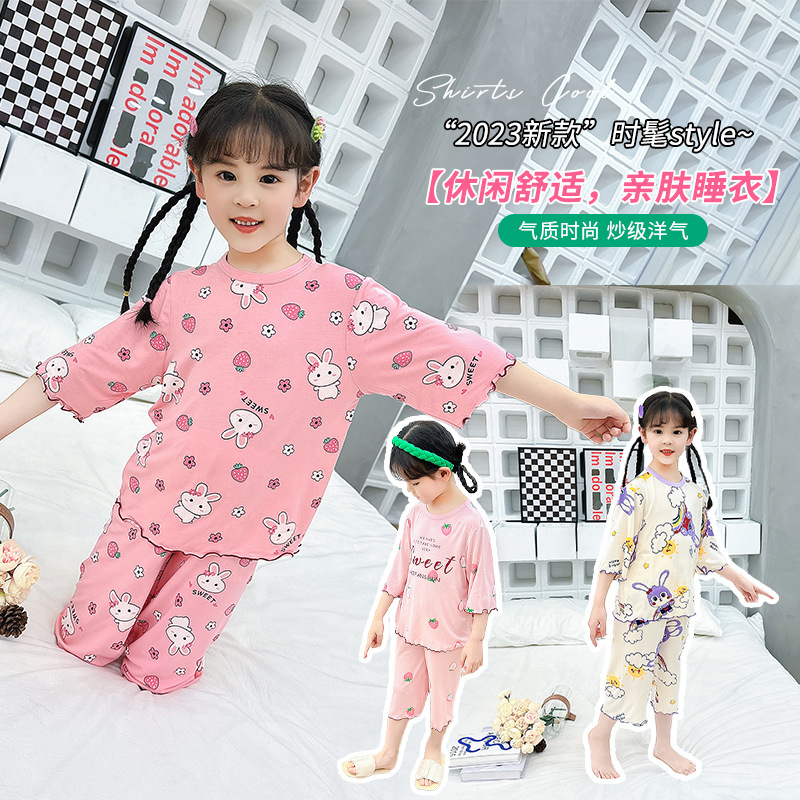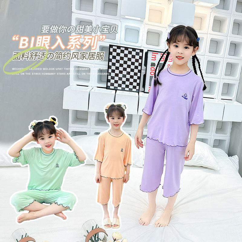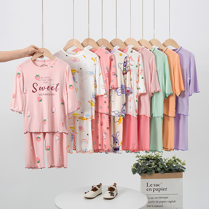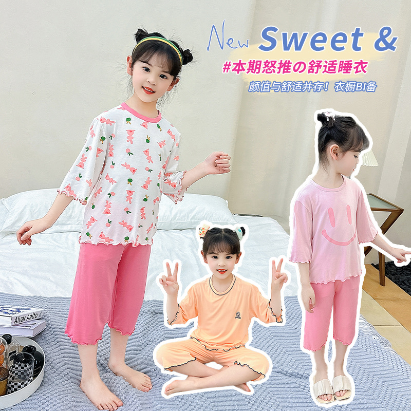 | nameOriginal | Girls' Short-sleeved Set Modal Summer Children's Pajamas Cute Set Seven-sleeved Air Conditioning Home Clothes Big Children's Wear |