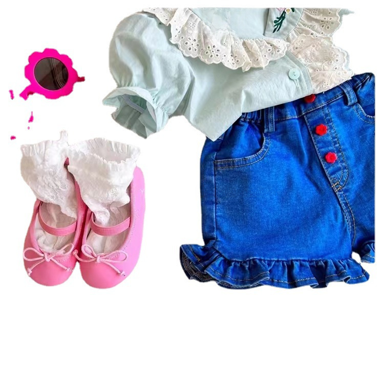 | nameOriginal | Girls' Short-sleeved Shirt Embroidered Lace Doll Shirt Summer Wear Korean Style Women's Baby Cute Pure Cotton Bubble Sleeve Top |