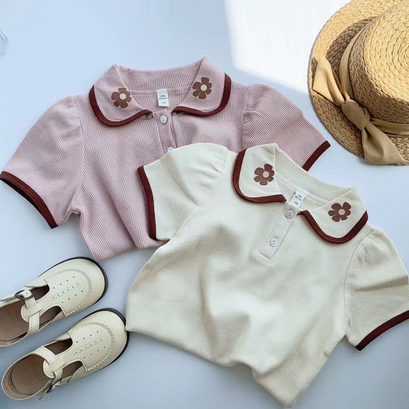 Girl’s Short-sleeved Shirt Summer New Arrival Baby Girl’s Reiki Sweet Waffler Printed Collar Top All-match