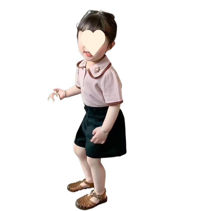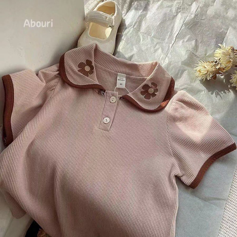 Girl's Short-sleeved Shirt Summer New Arrival Baby Girl's Reiki Sweet Waffler Printed Collar Top All-match