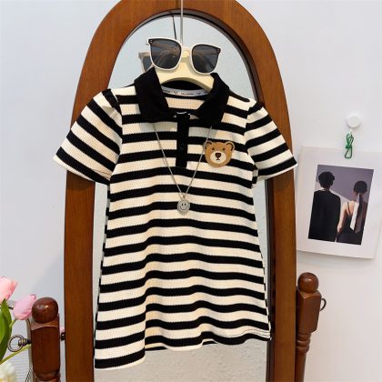 | nameOriginal | Girls' Short-sleeved Shirt Summer New Stylish Children's Striped T-Shirt Girls' Casual Top Summer Wear |