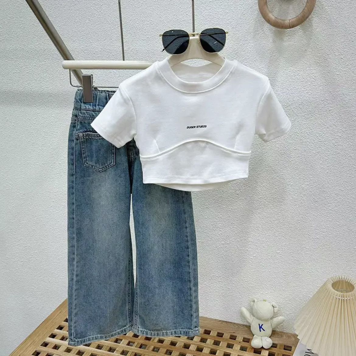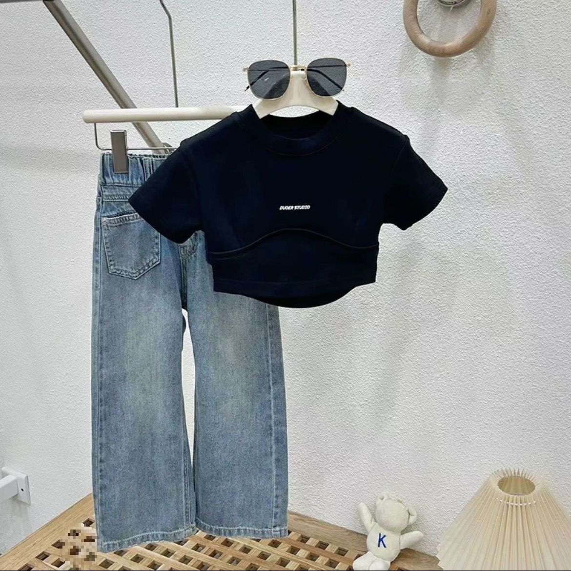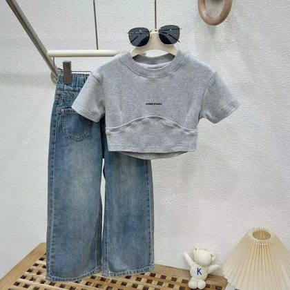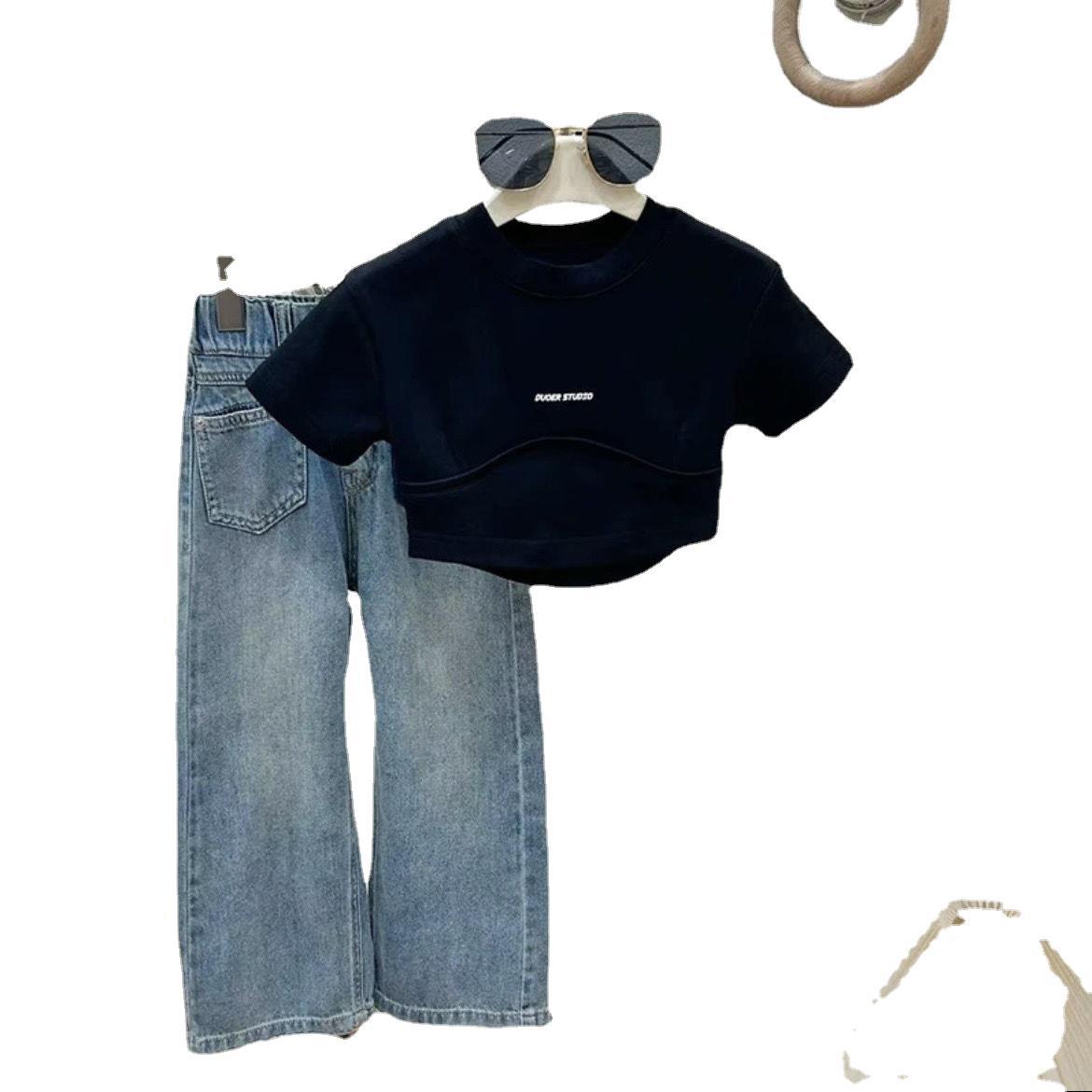 | nameOriginal | Girls' Short-sleeved suit 2024 Summer New Children's Wear Korean Style Fashionable All-match Short-sleeved Casual Jeans Two-piece Set |