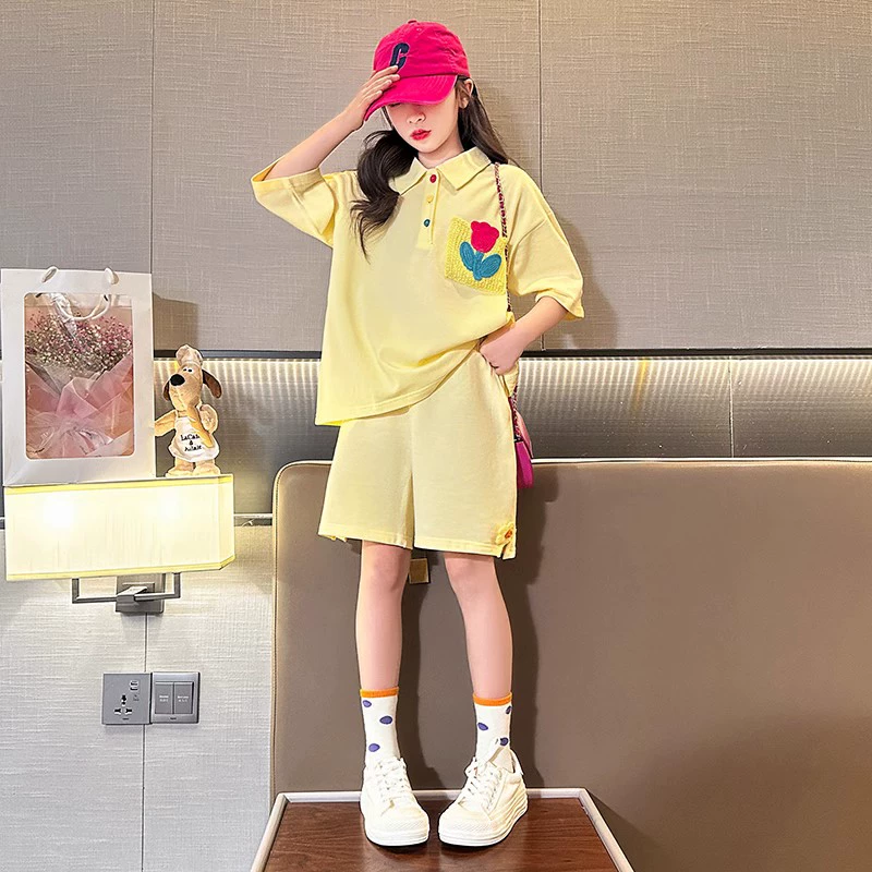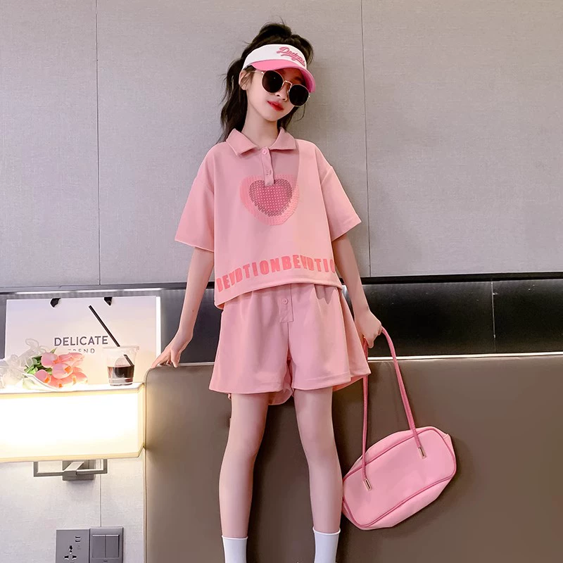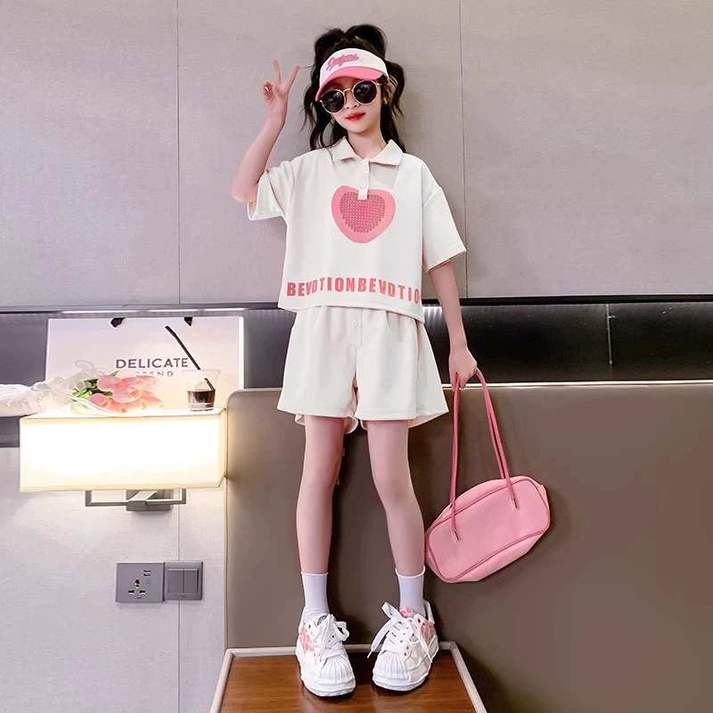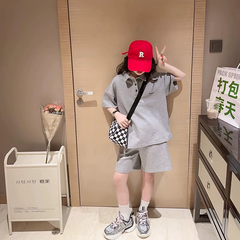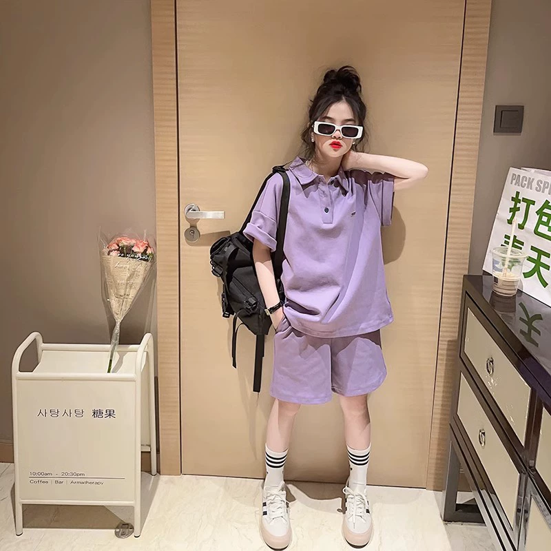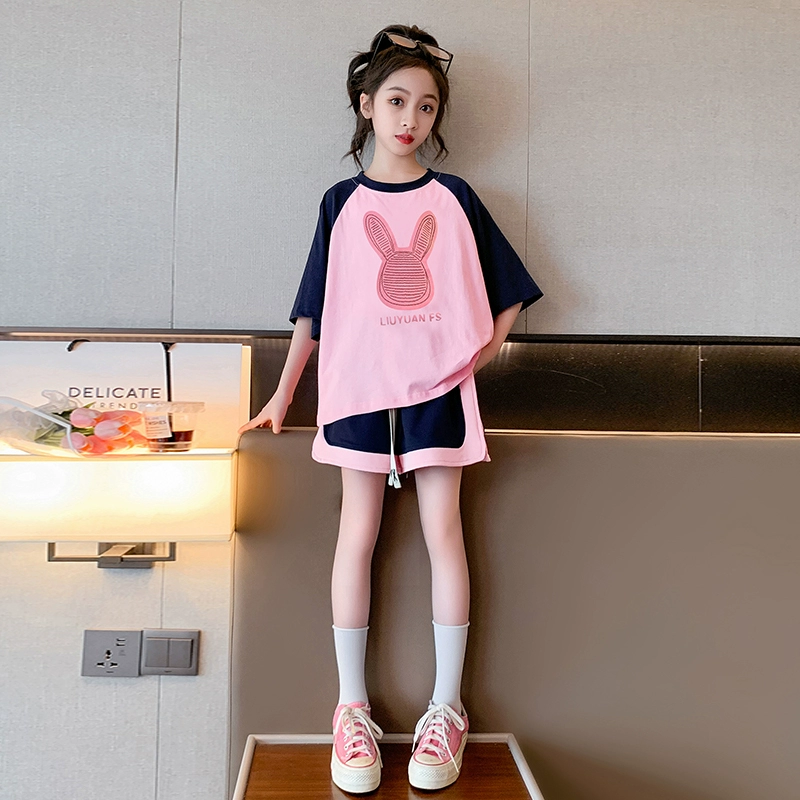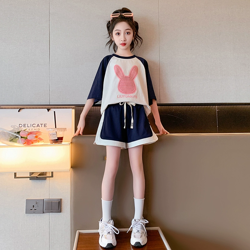 Girls short-sleeved suit summer clothes 2024 new children's Internet celebrity summer clothes fashionable medium and large children's shorts girls' clothes