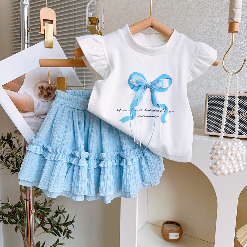 | nameOriginal | Girls Short-sleeved suit Summer New Fashion Casual Bow Short-sleeved Plaid Two-piece Skirt Set CM0113 |