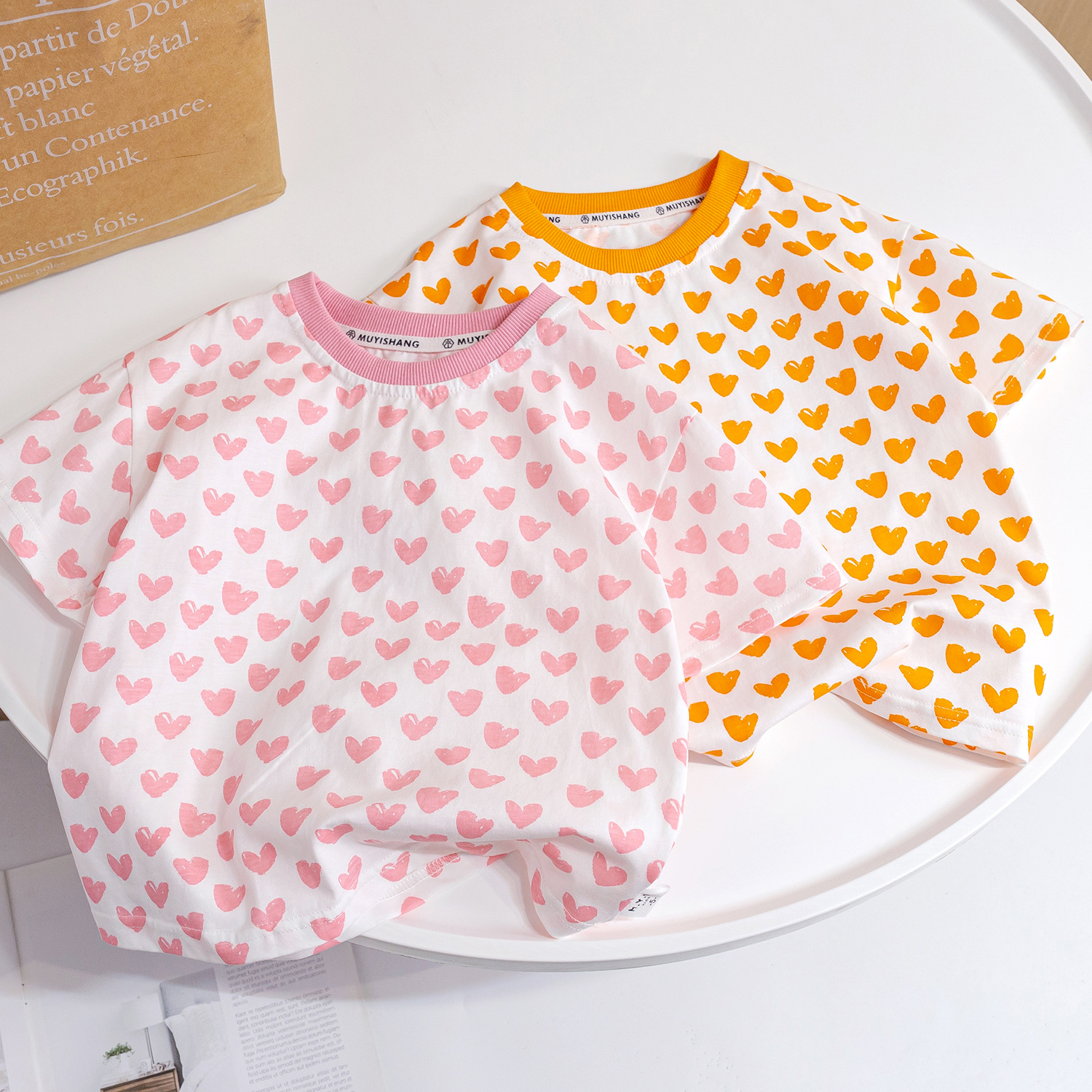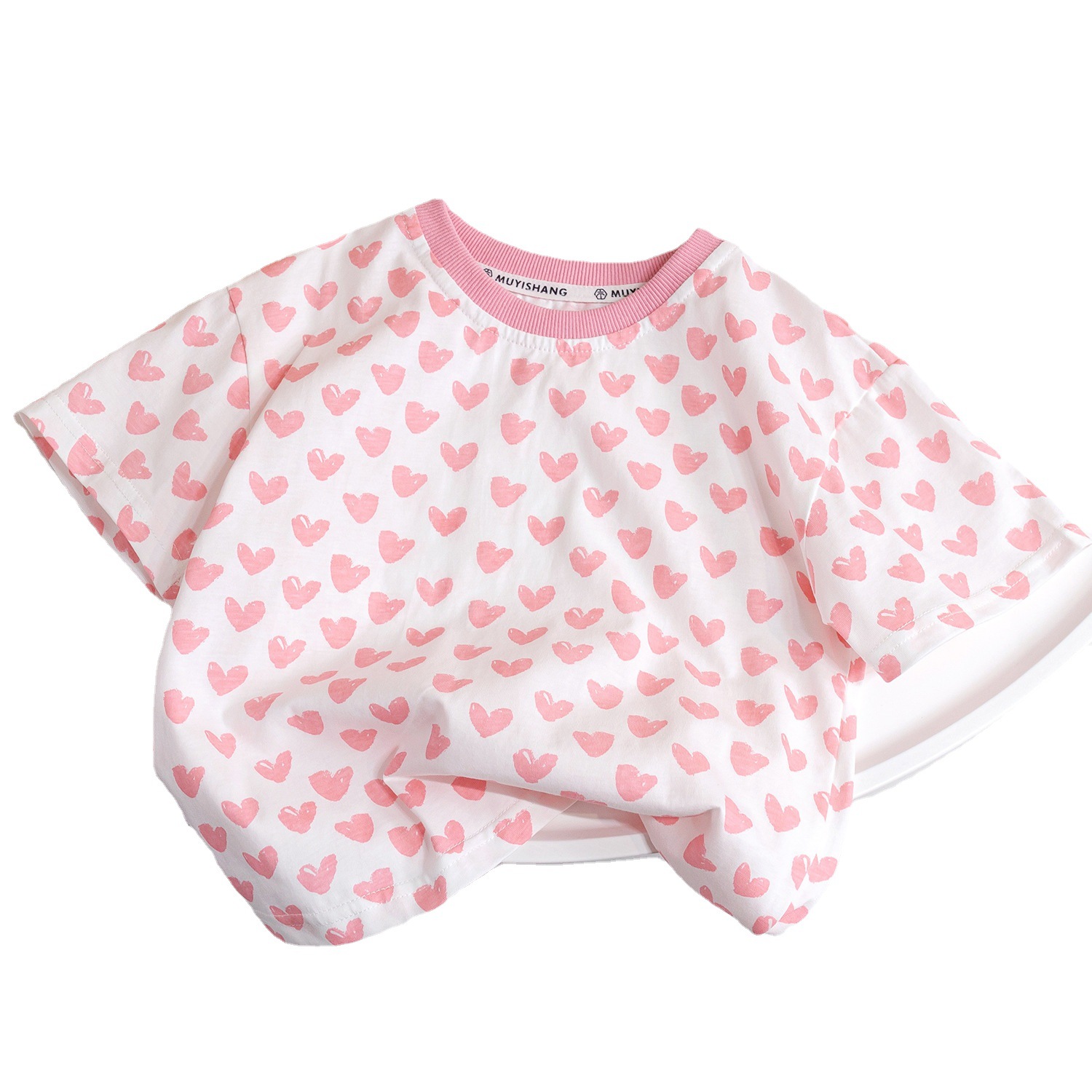 | nameOriginal | Girls' Short-sleeved T-shirt 2023 Summer New Arrival Girls' Stylish Summer Clothes Children's Heart Half-sleeved All-match Trendy Top |