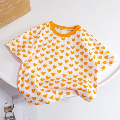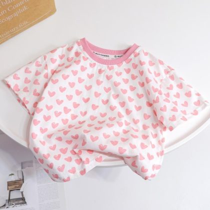 | nameOriginal | Girls' Short-sleeved T-shirt 2023 Summer New Arrival Girls' Stylish Summer Clothes Children's Heart Half-sleeved All-match Trendy Top |