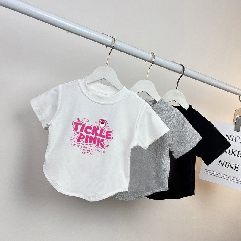 Girls’ Short-sleeved T-shirt 2024 New Korean Style Thin Half-sleeved Little Girl’s Cotton Hems Curved Letter Top Ins