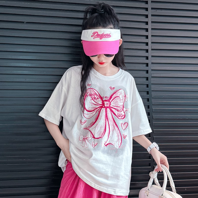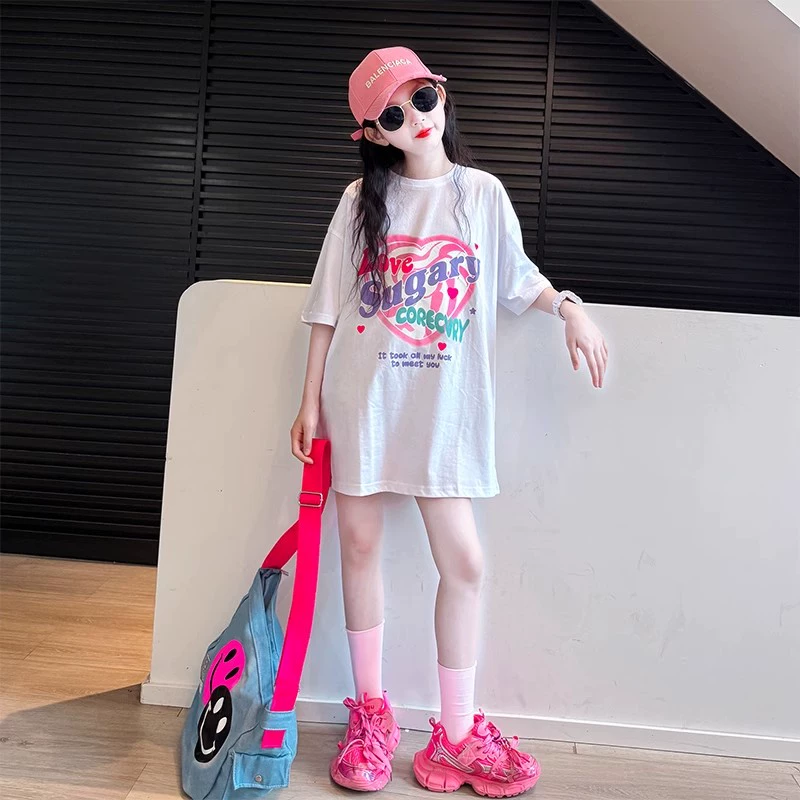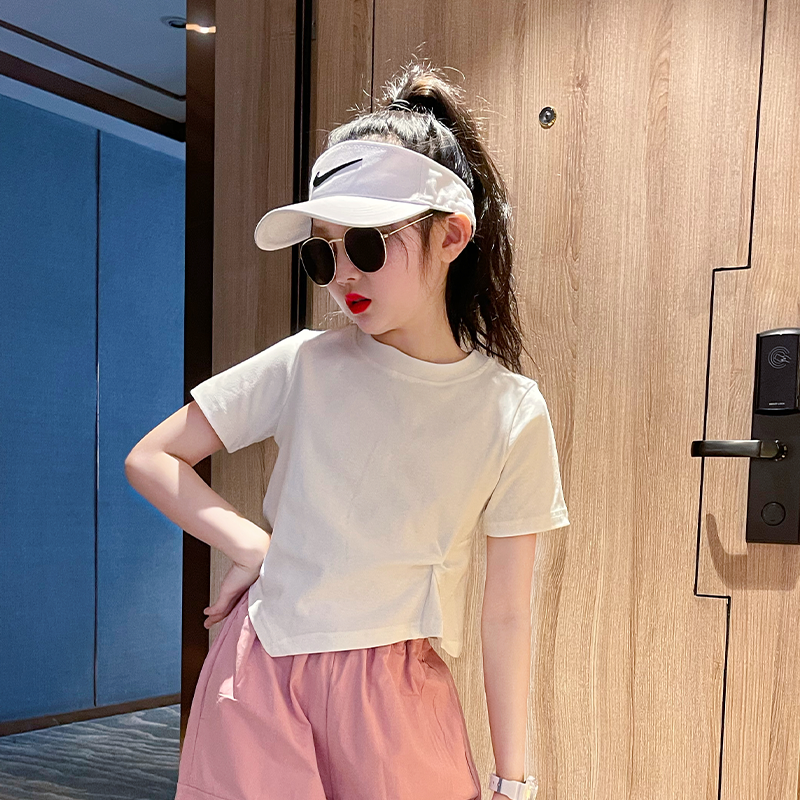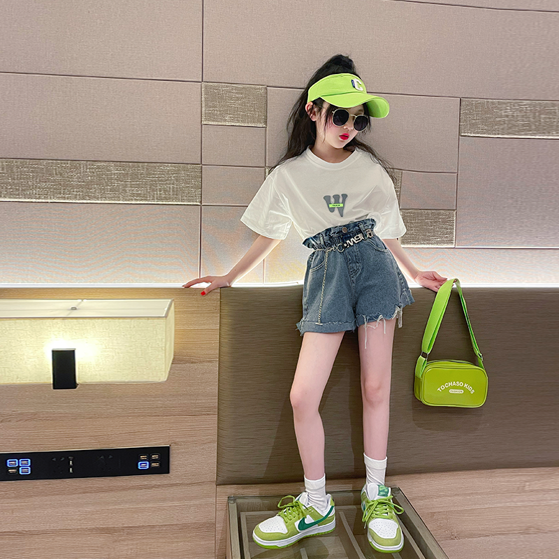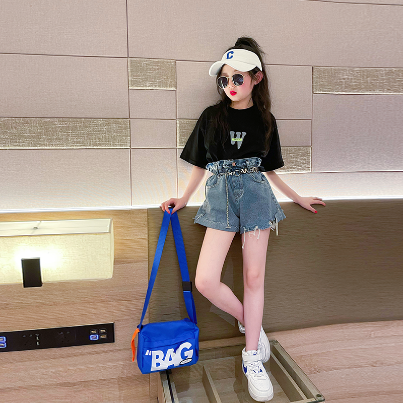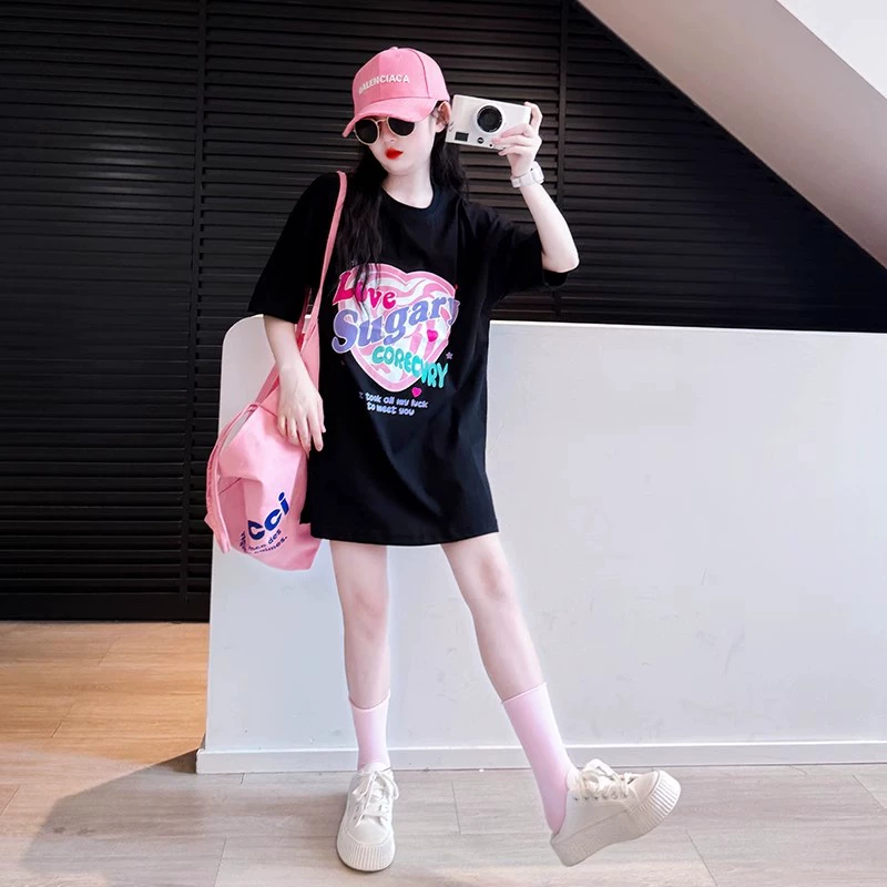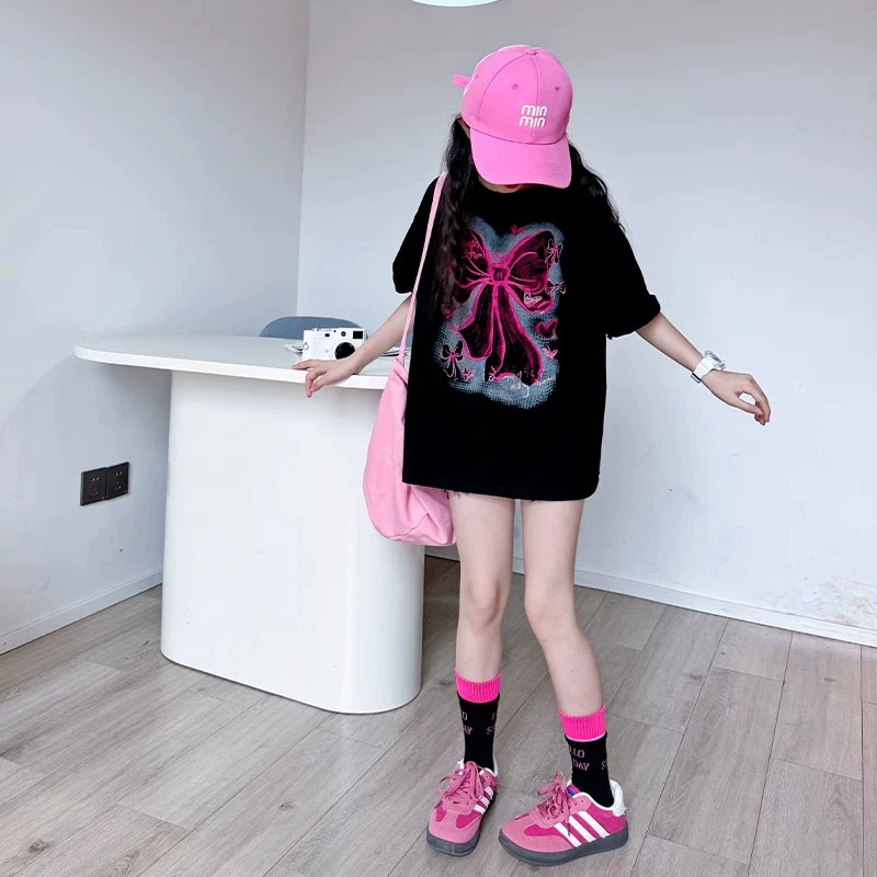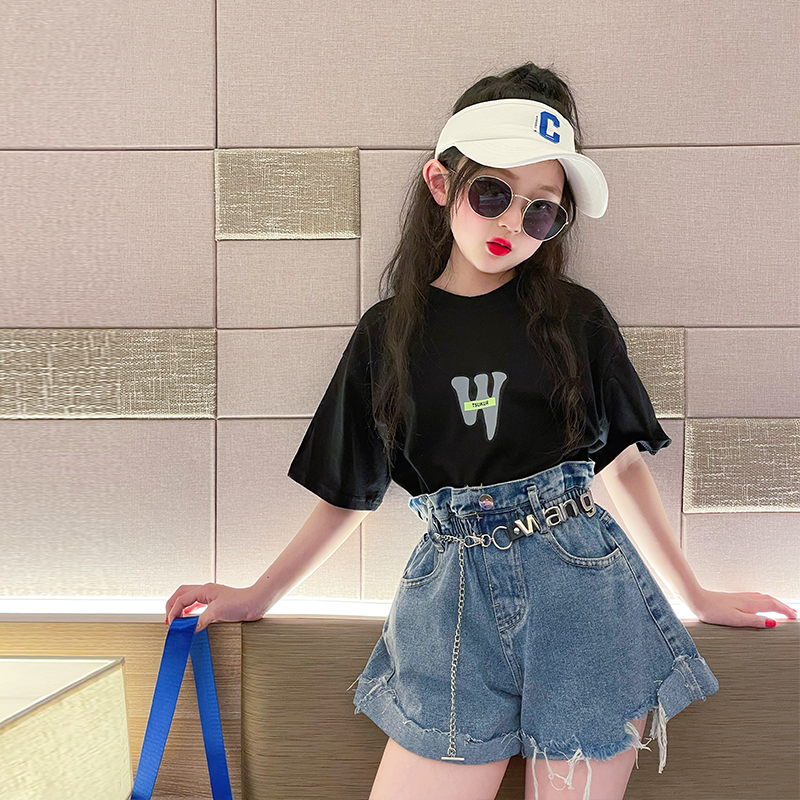 | nameOriginal | Girls short-sleeved T-shirt suit summer 2024 new style children's stylish black top summer girl casual T-shirt |