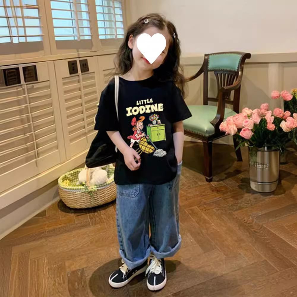 | nameOriginal | Girls' Short-sleeved T-shirt Summer 2024 New Western-style Children's Breathable Sweat-absorbent Top Girl's Loose Base Shirt |