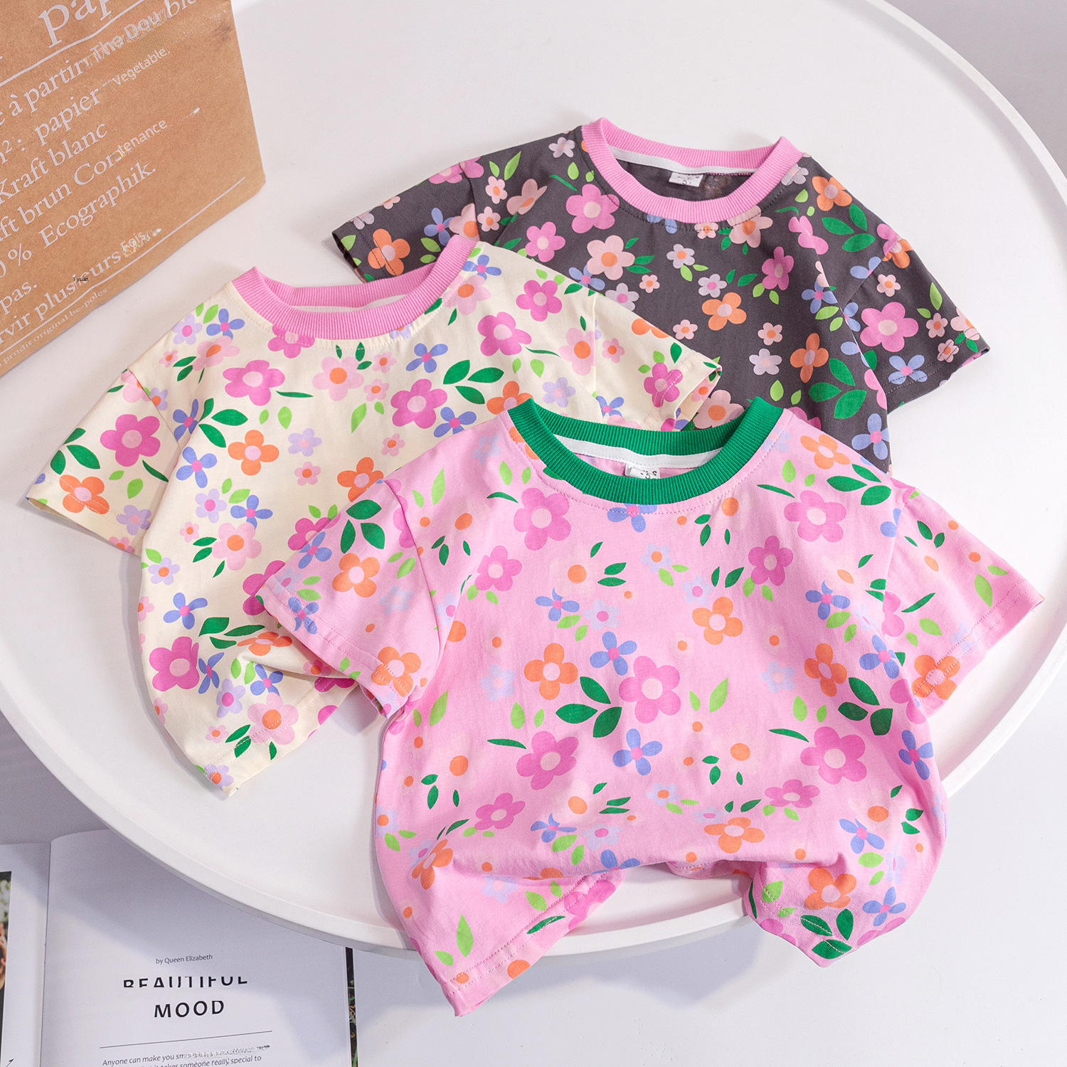 | nameOriginal | Girls' Short-sleeved T-shirt Summer New Korean Style Women's Baby's Stylist Cotton Thin Floral T-shirt Girls' Half-sleeved Top |