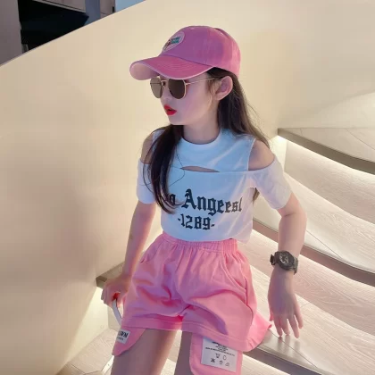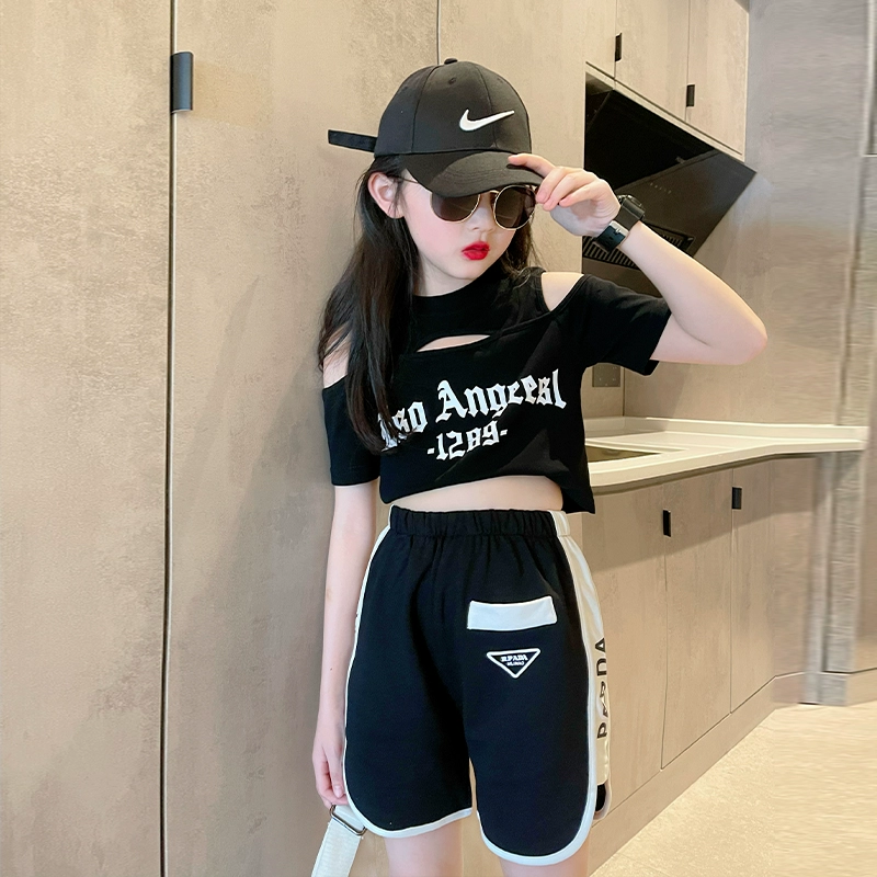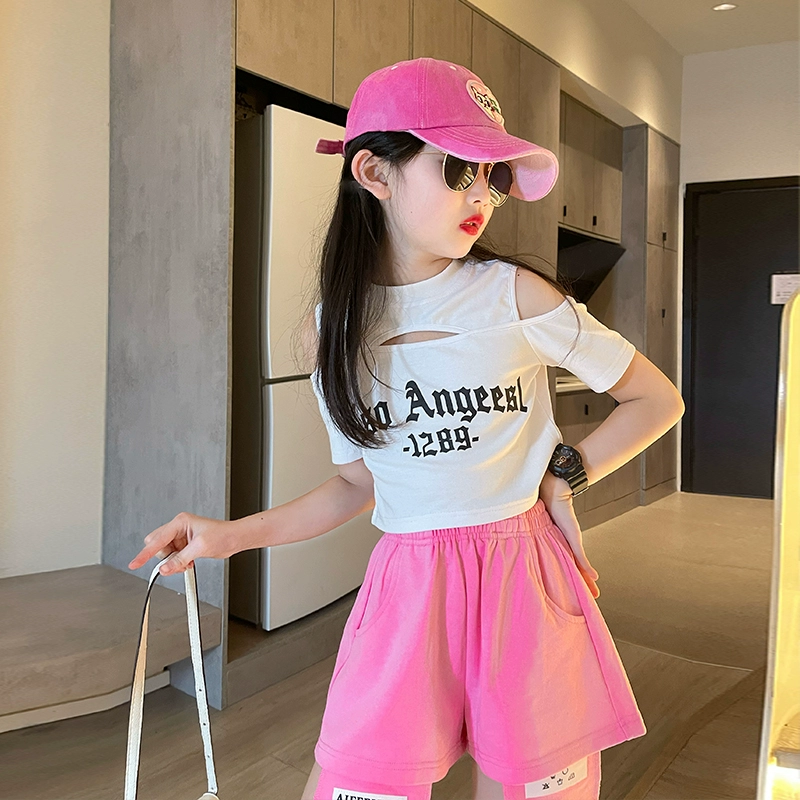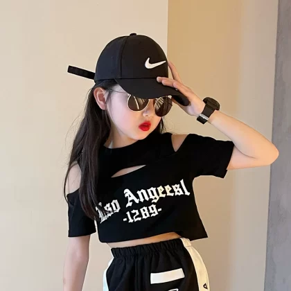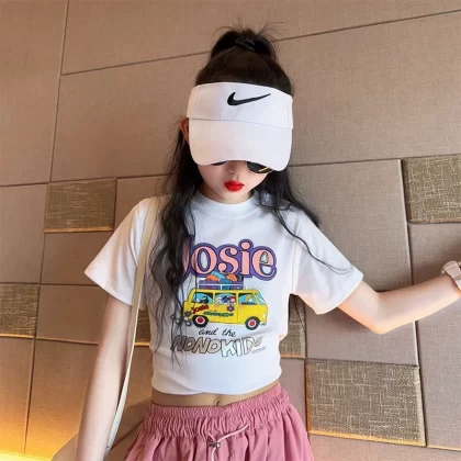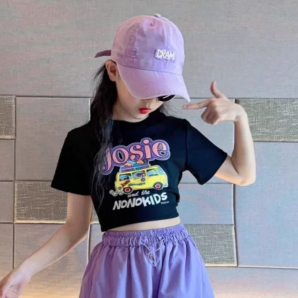| nameOriginal | Girls short-sleeved t-shirt summer wear 2024 new Internet celebrity street caring shirt girls summer children's wear big children's hip-hop tops |