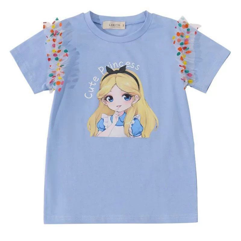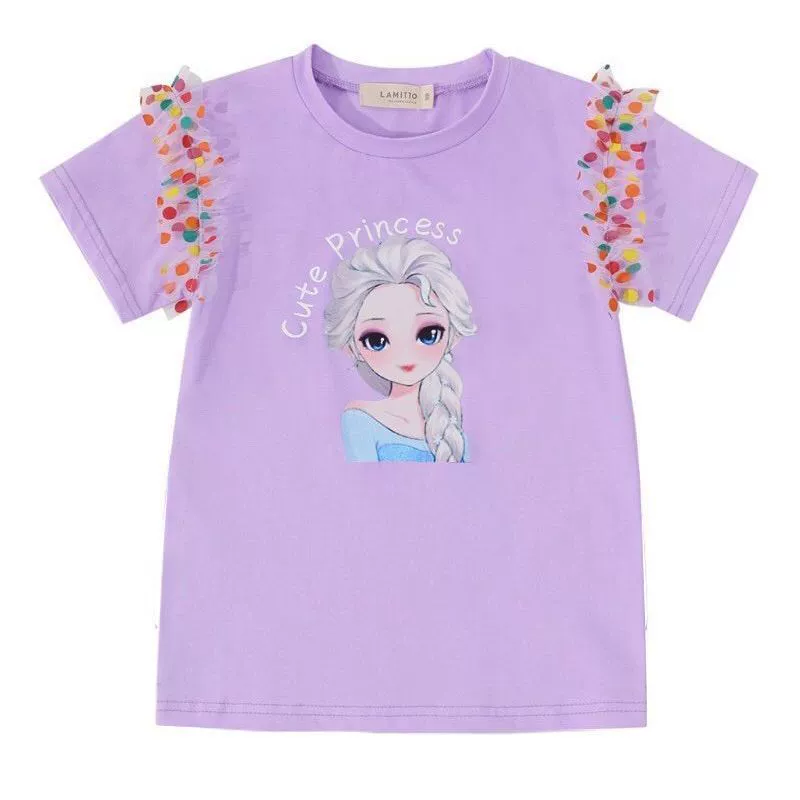 | nameOriginal | Girls' short-sleeved T-shirts new summer clothes children's fashionable tops fashionable and versatile colorful polka dot mesh cartoon T-shirts trendy |
