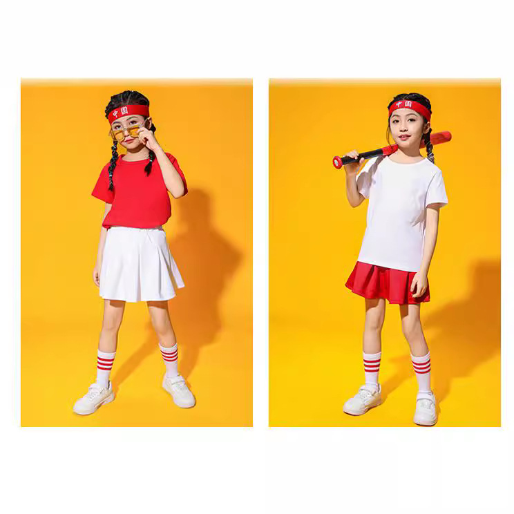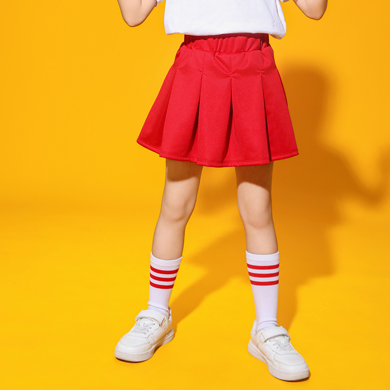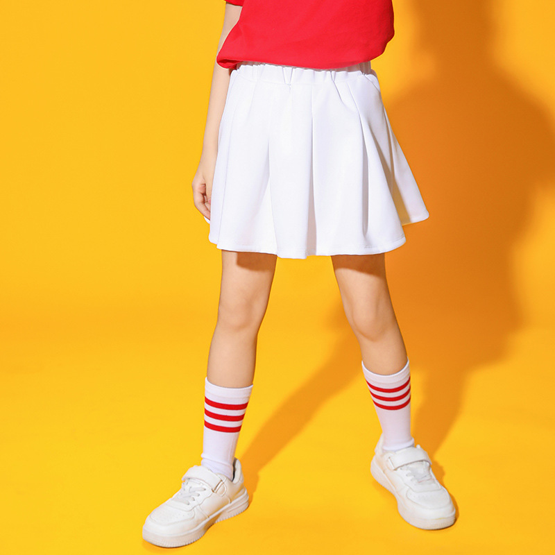 Girls' Skirt White Skirt Summer Primary School Uniform Red Pleated Skirt Skirt Foreign Trade Cross-border Wholesale