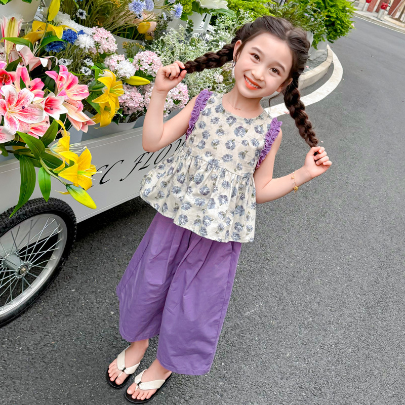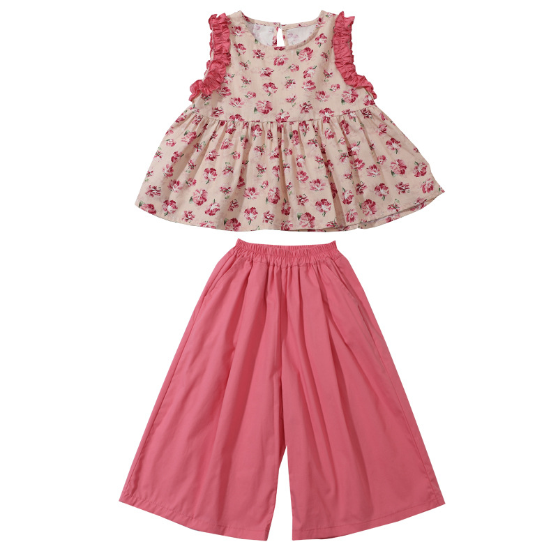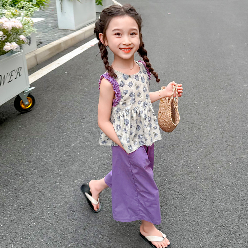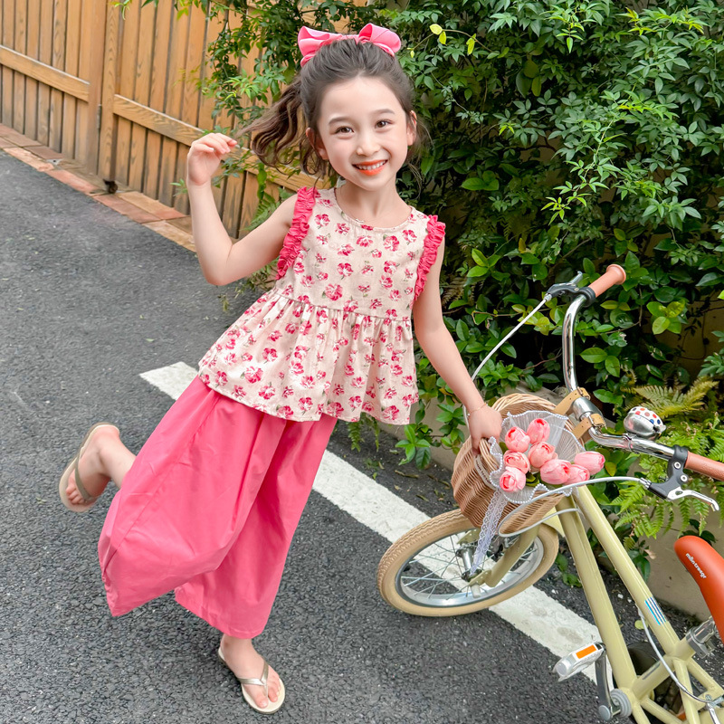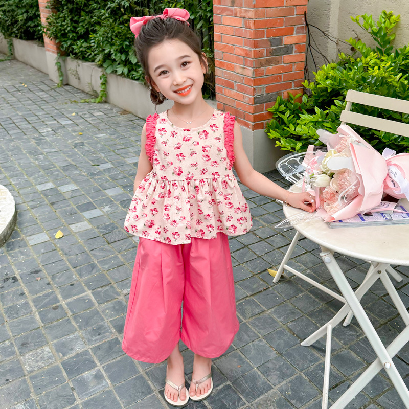 | nameOriginal | Girls' Sleeveless Floral Shirt suit Summer New Arrival Girls' Wide Leg Pants Summer Dress Girls' Korean Two-Piece Set |