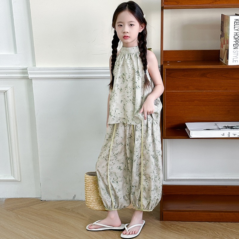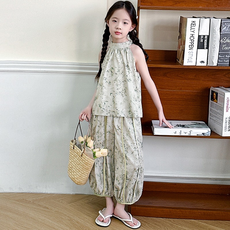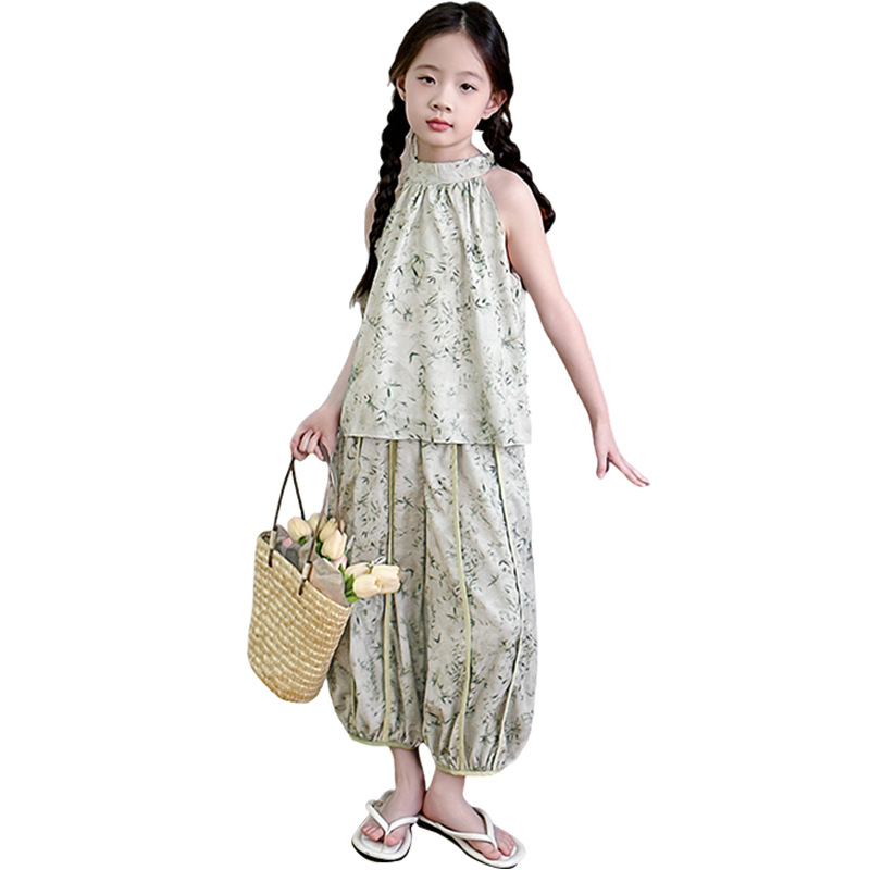 Girls’ Sleeveless suit Summer 2024 New Arrival Large Children’s Neck Top Thin Bloomers suit Loose Korean Style