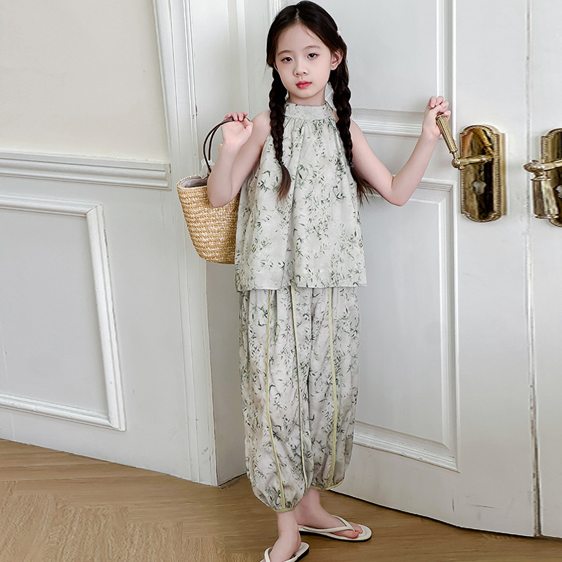 Girls' Sleeveless suit Summer 2024 New Arrival Large Children's Neck Top Thin Bloomers suit Loose Korean Style
