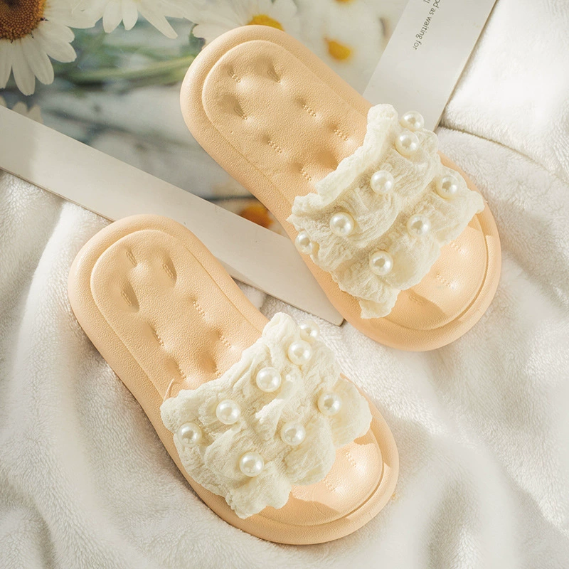 | nameOriginal | Girls' slippers, fashionable outerwear, pearl princess style home, cute soft-soled slippers, children's non-slip beach sandals |