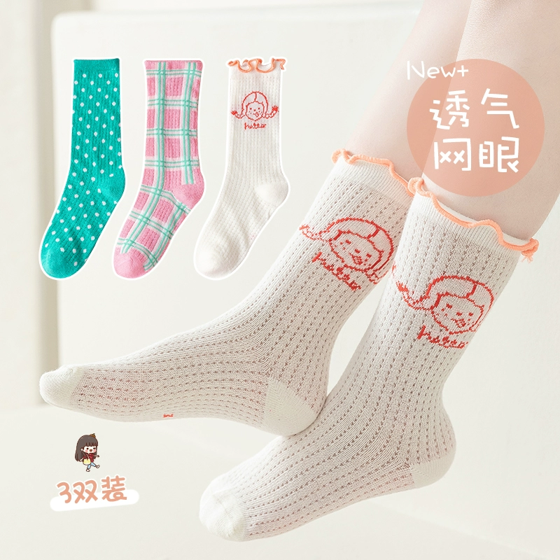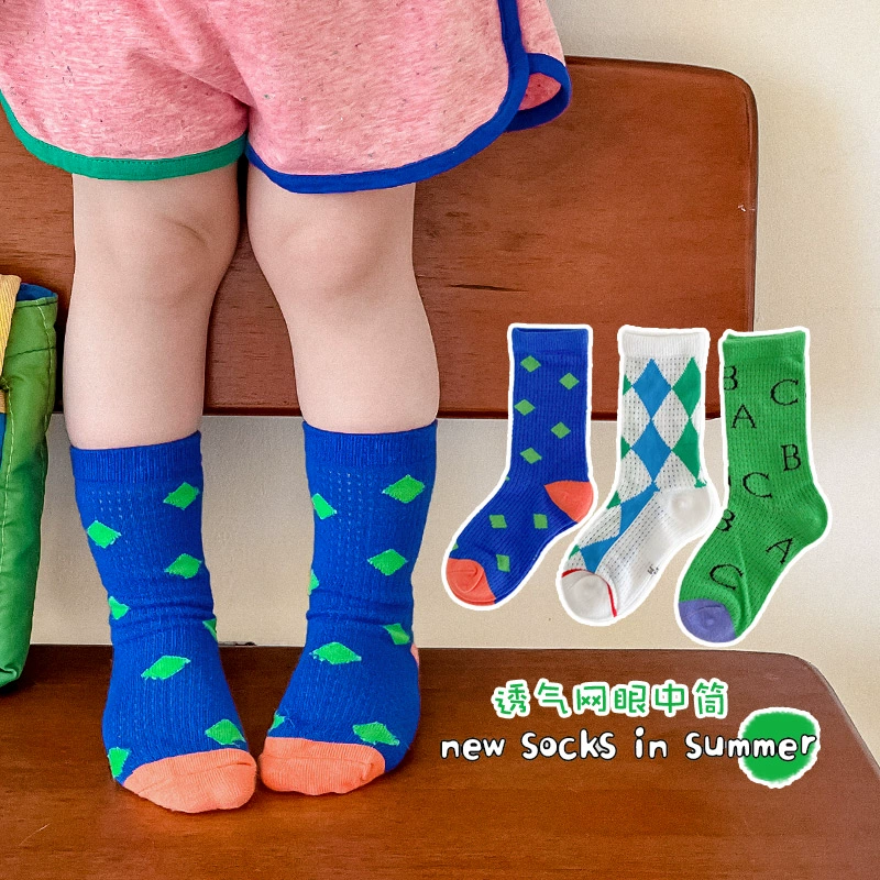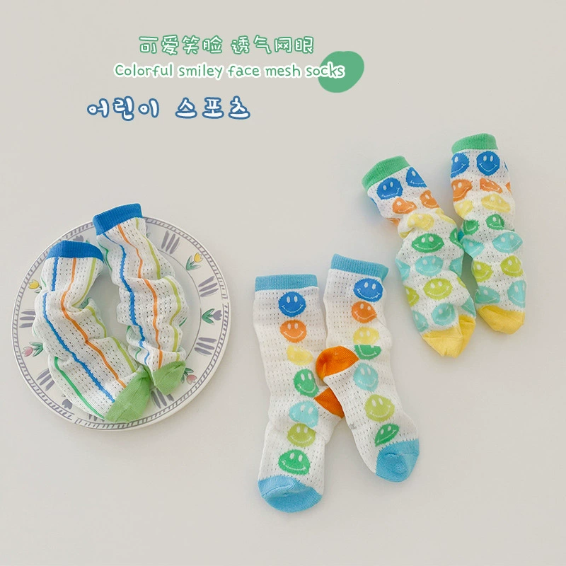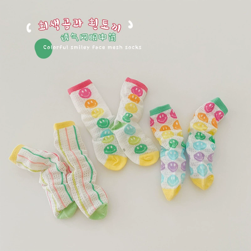 | nameOriginal | Girls' smiling face socks Korean ins trendy colorful mid-tube socks summer thin pure cotton card silk mesh breathable long tube |