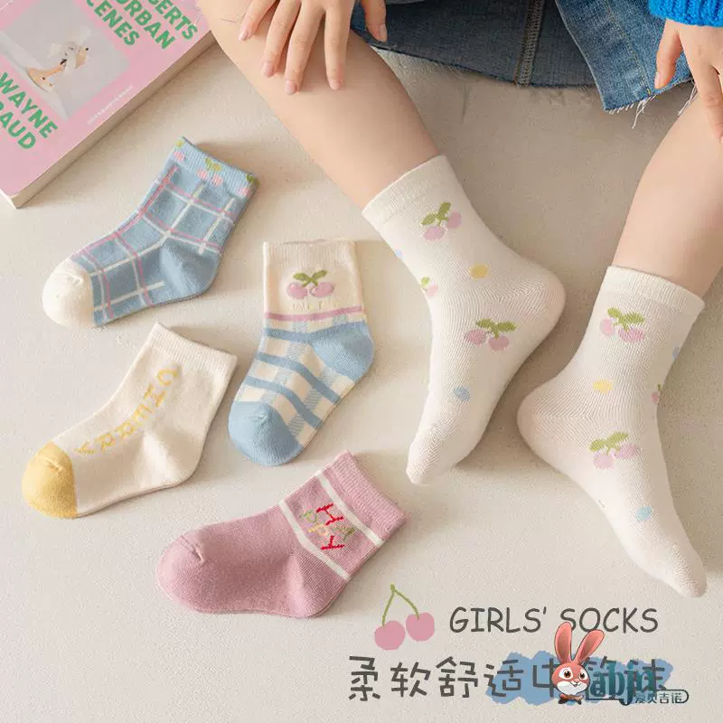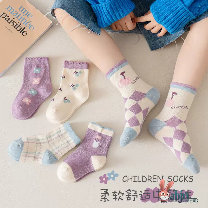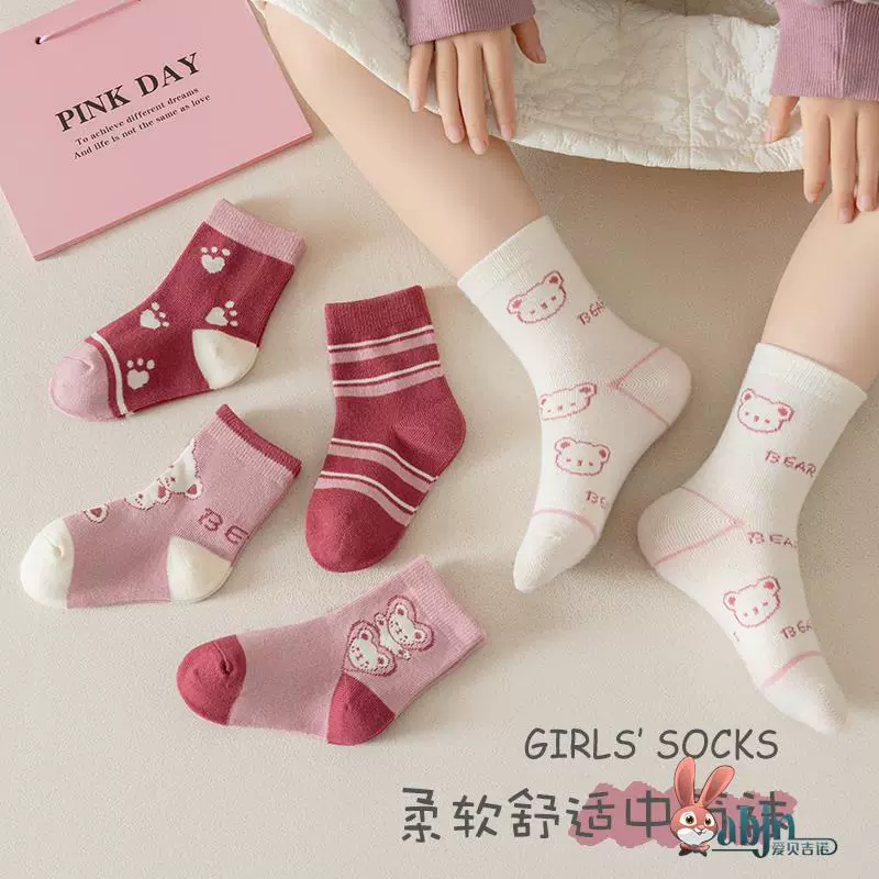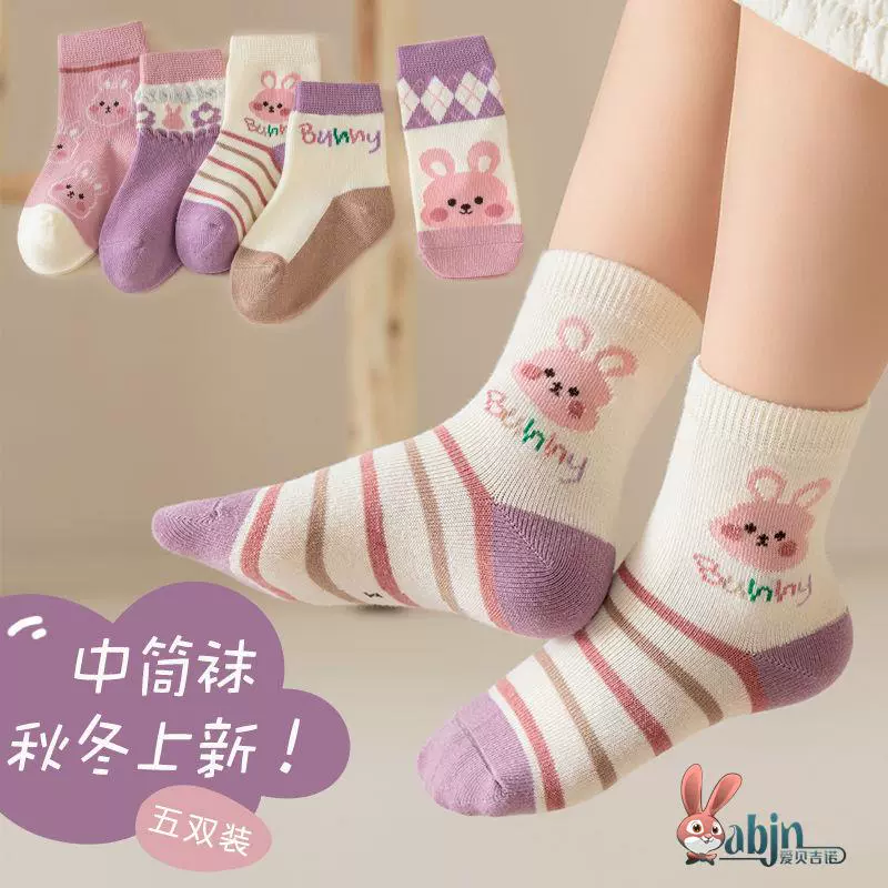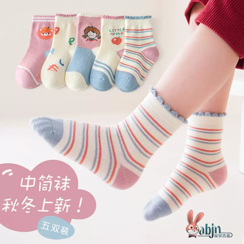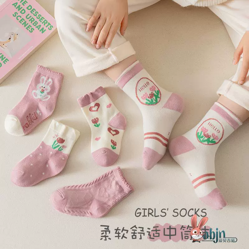 Girls' socks, spring and autumn pure cotton mid-tube socks for outer wear, trendy baby autumn boneless children's socks, little girls' long tube socks