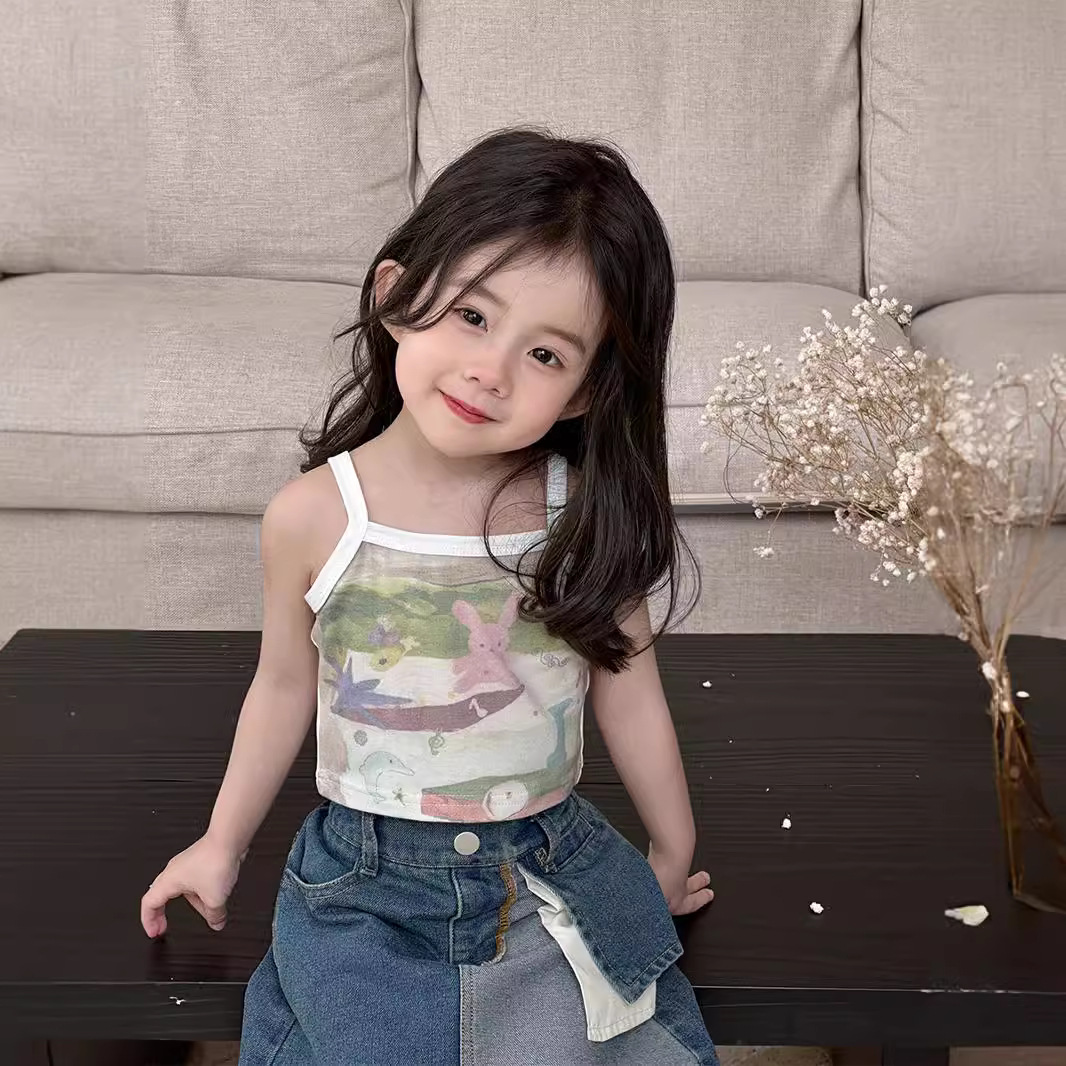 | nameOriginal | Girls' Spice Style Graffiti Vest 2024 Summer New Children's Cartoon Printed Sleeveless T-Shirt Sling |