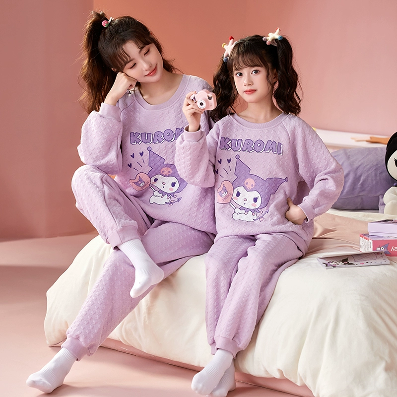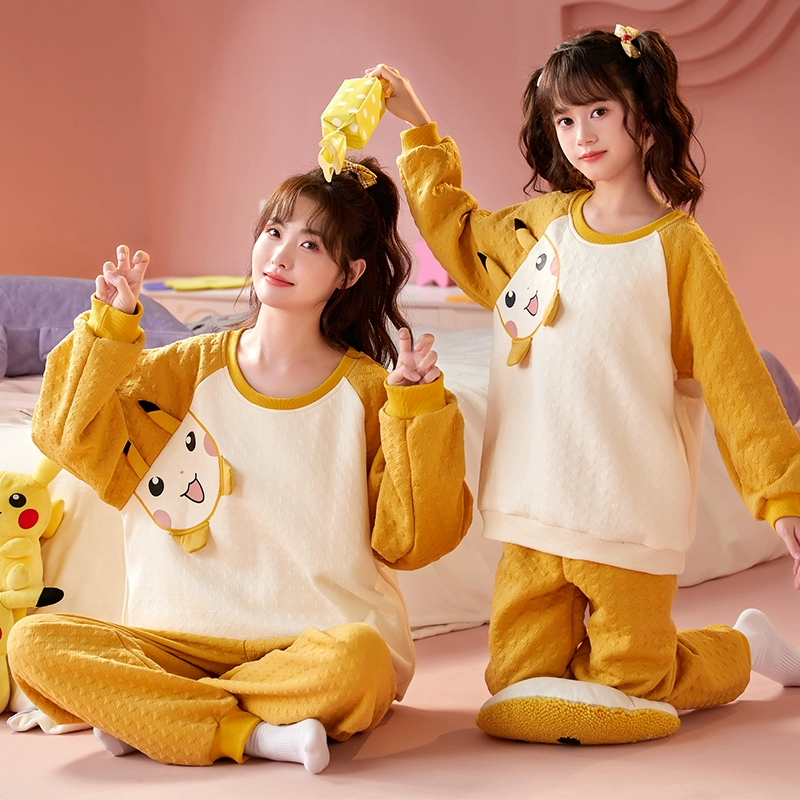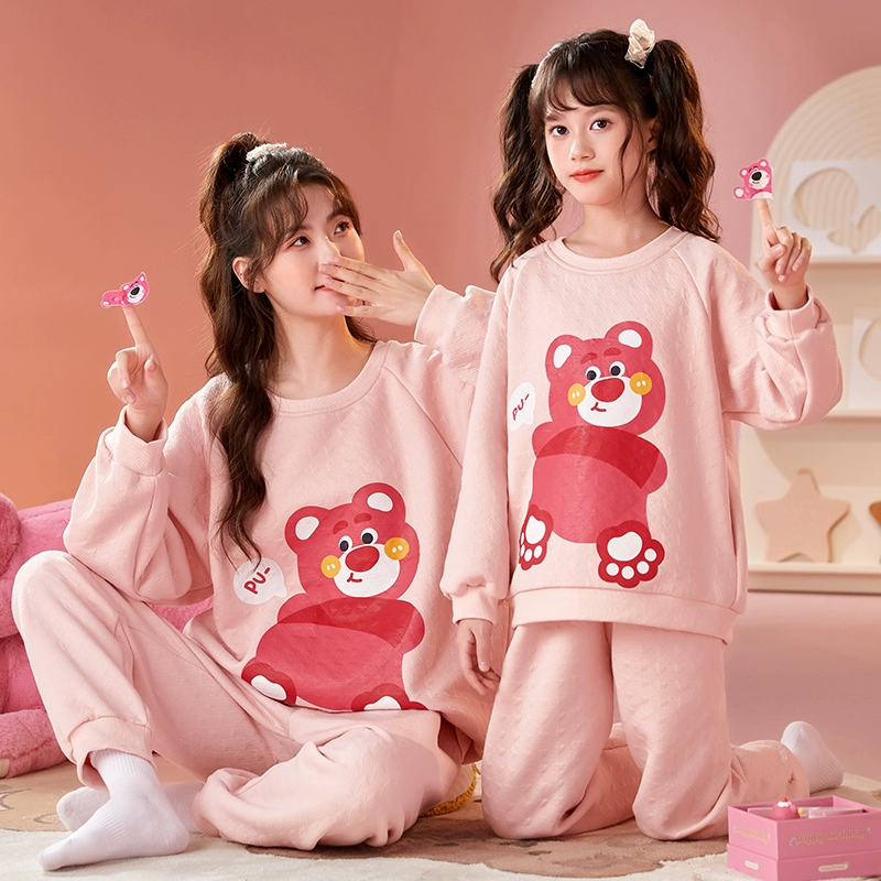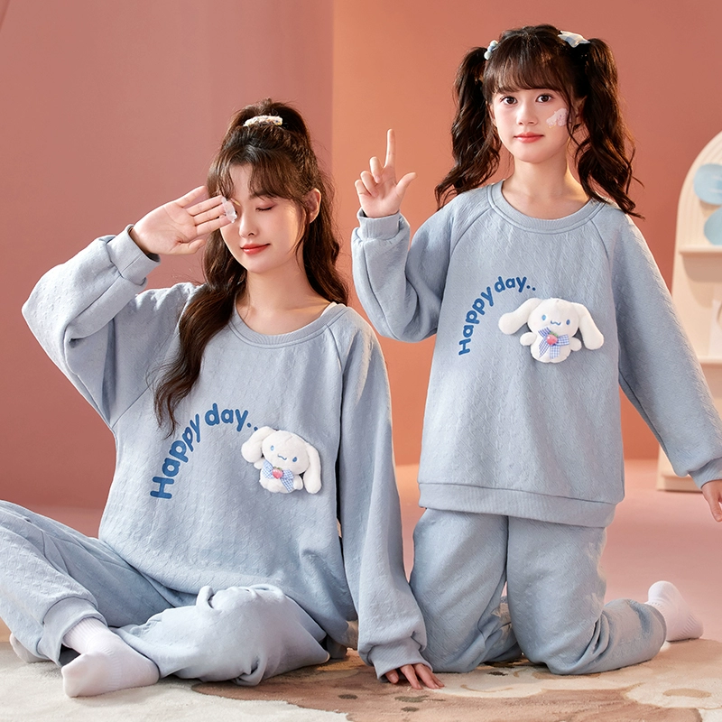 Girls spring and autumn air cotton thickened parent-child pajamas
