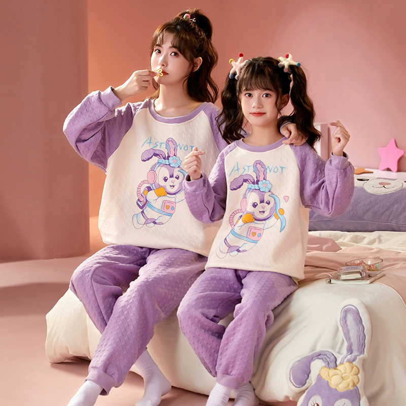 Girls’ spring and autumn air cotton thicken parent -child pajamas
