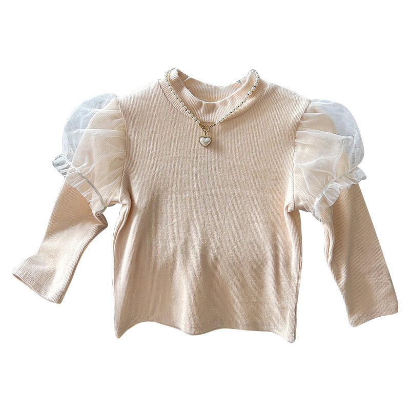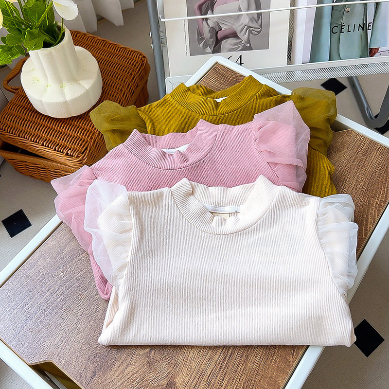 | nameOriginal | Girls' Spring and Autumn new mesh puff sleeve lace half turtleneck bottoming shirt TQ359 |
