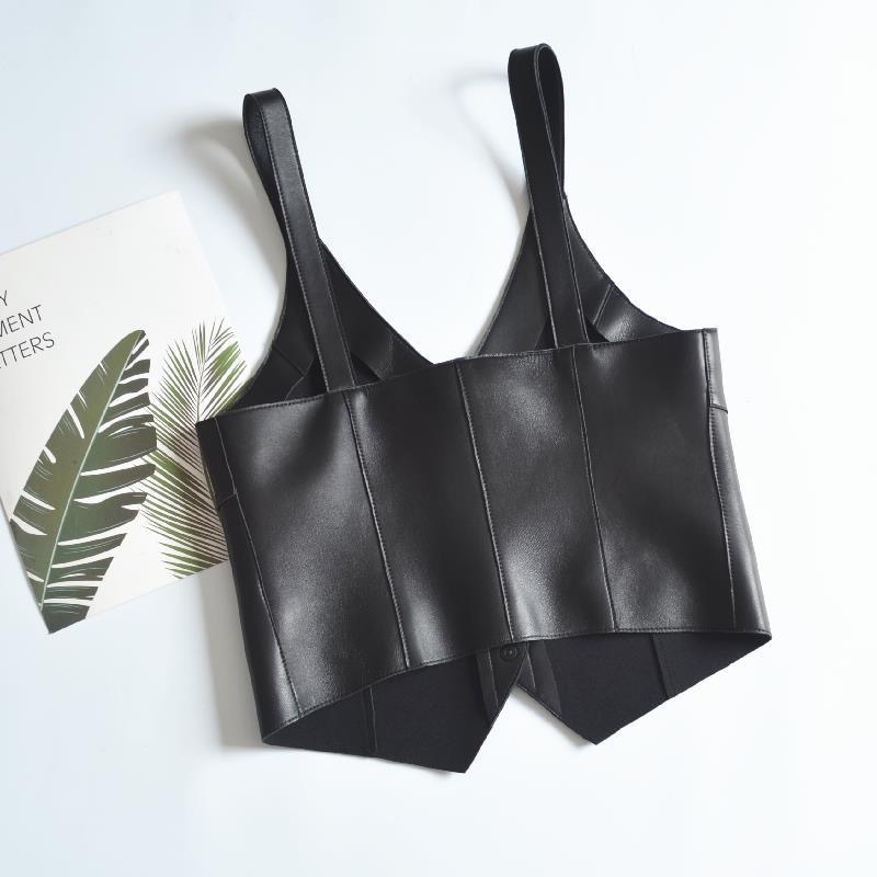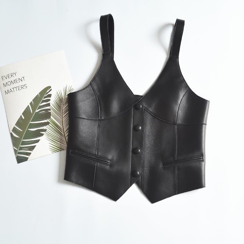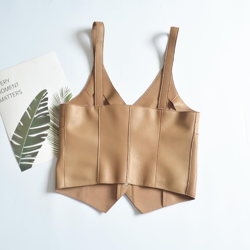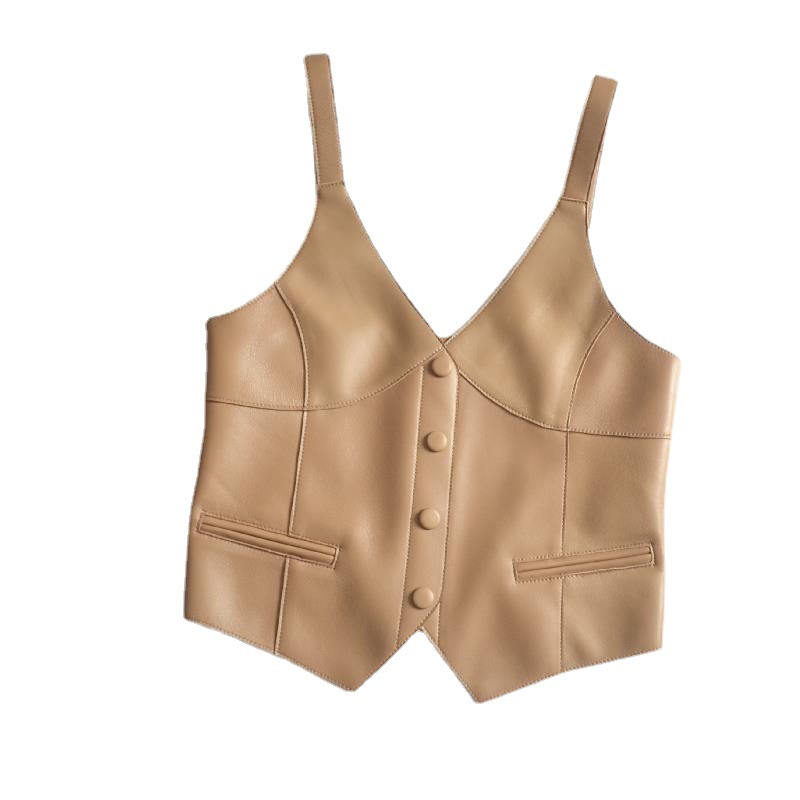 | nameOriginal | Girls' Spring and Autumn New V-neck solid color single-breasted fashion leather sling fashion all-match vest sleeveless vest |