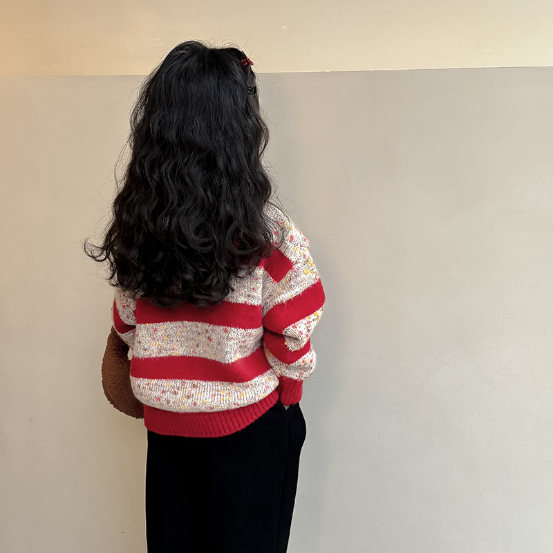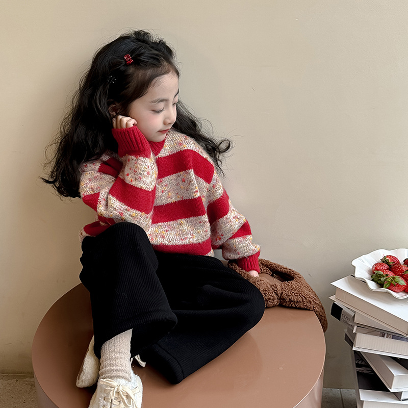 Girls' Spring and Autumn Sweater 2024 new arrival girls' red New Year festive clothes children's new year knitted bottoming shirt