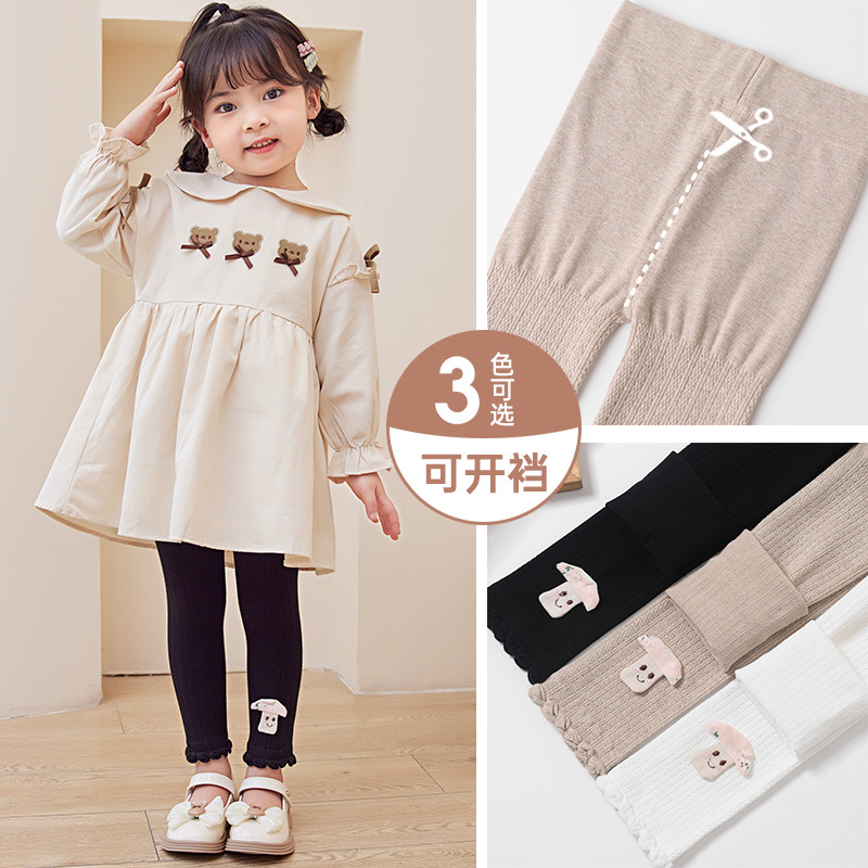 Girls' spring and autumn thin leggings new baby dual-use cotton twist breathable cute children's cropped pants
