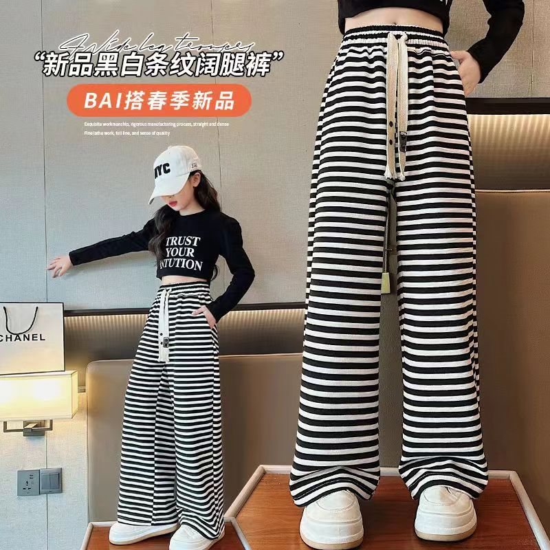 | nameOriginal | Girls' Spring and Autumn Wide Leg Pants Children's 2024 New Style Sweatpants Stylish Big Children's Spring Loose Striped Pants |
