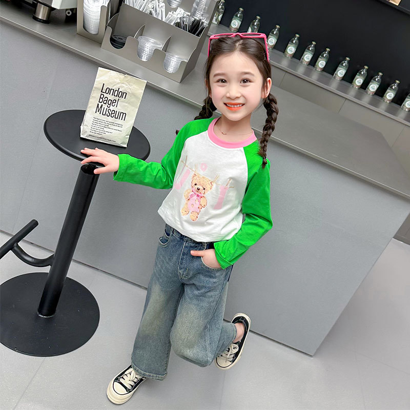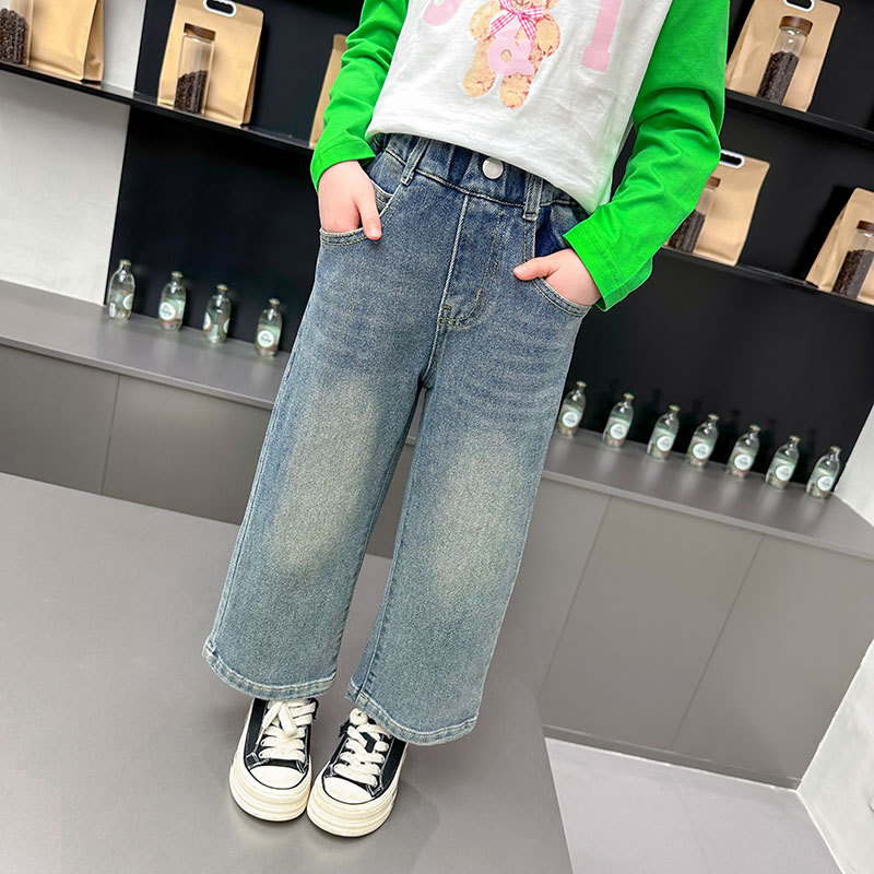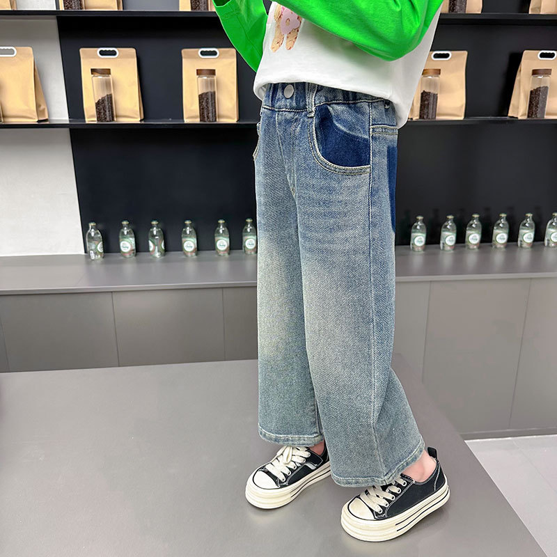 | nameOriginal | Girls' spring pants 2024 New Western style spring clothing children's loose wide-leg pants children's contrast color pocket Denim |