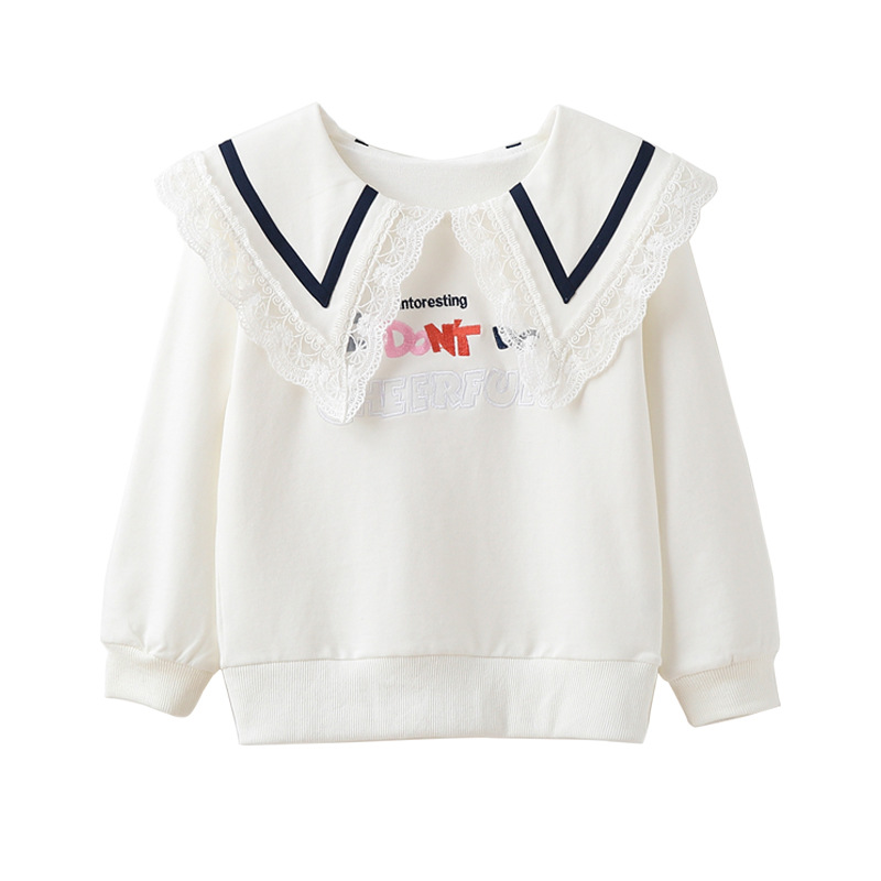 Girls' Spring Wear Sweatshirt Large Children's Western Style Long Sleeve Spring and Autumn 2023 New Children's White Pure Cotton Doll Collar Top