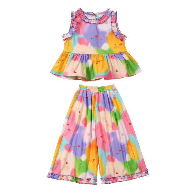 Girls' Star Tie-Dye suit Summer 2024 New Children's Stylish Fashionable Wide Leg Pants Baby Girls' Summer Casual