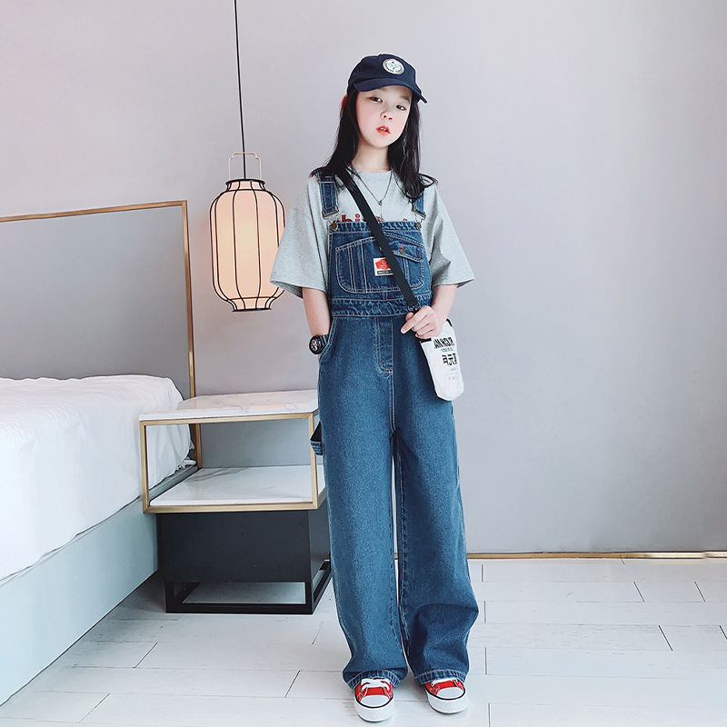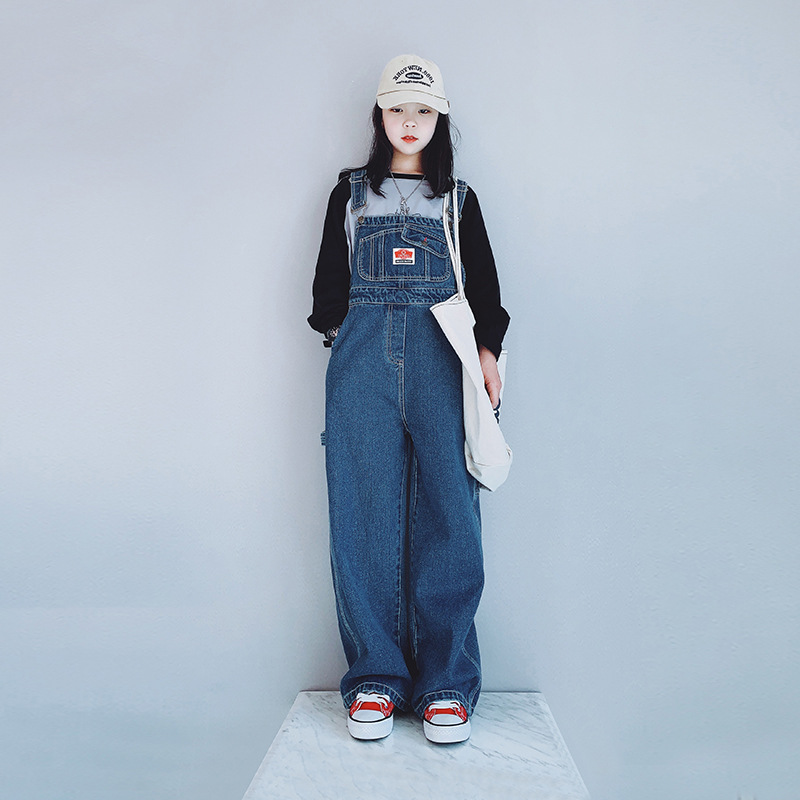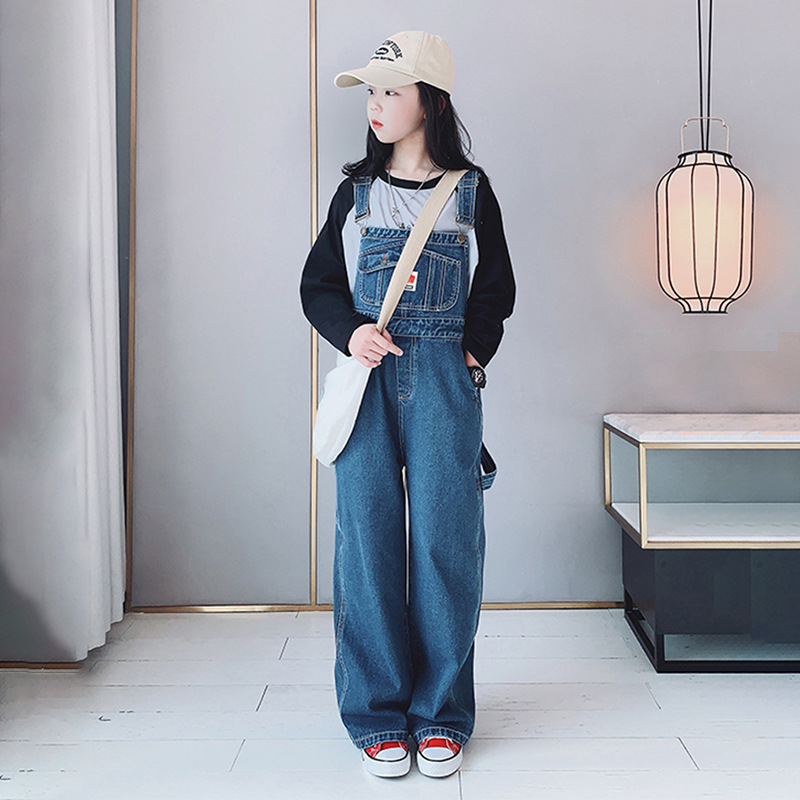Girls' Straight Denim Overalls 2024 Spring and Autumn New Korean Style Children's Loose Casual Slimming High Waist Suspenders