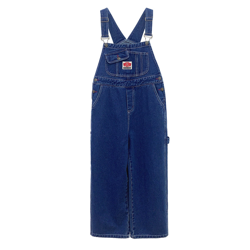 Girls’ Straight Denim Overalls 2024 Spring and Autumn New Korean Style Children’s Loose Casual Slimming High Waist Suspenders