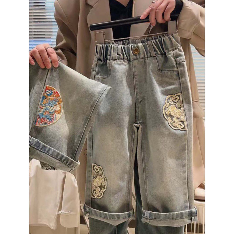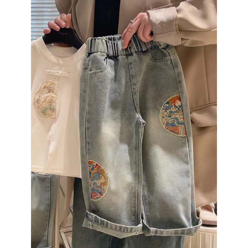 | nameOriginal | Girls' Straight-Leg Jeans Spring New Style Middle and Big Kids Girls' Casual All-Match Wide-Leg Pants National Style Elegant Long Pants |