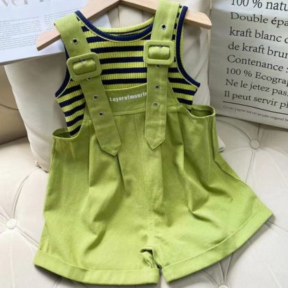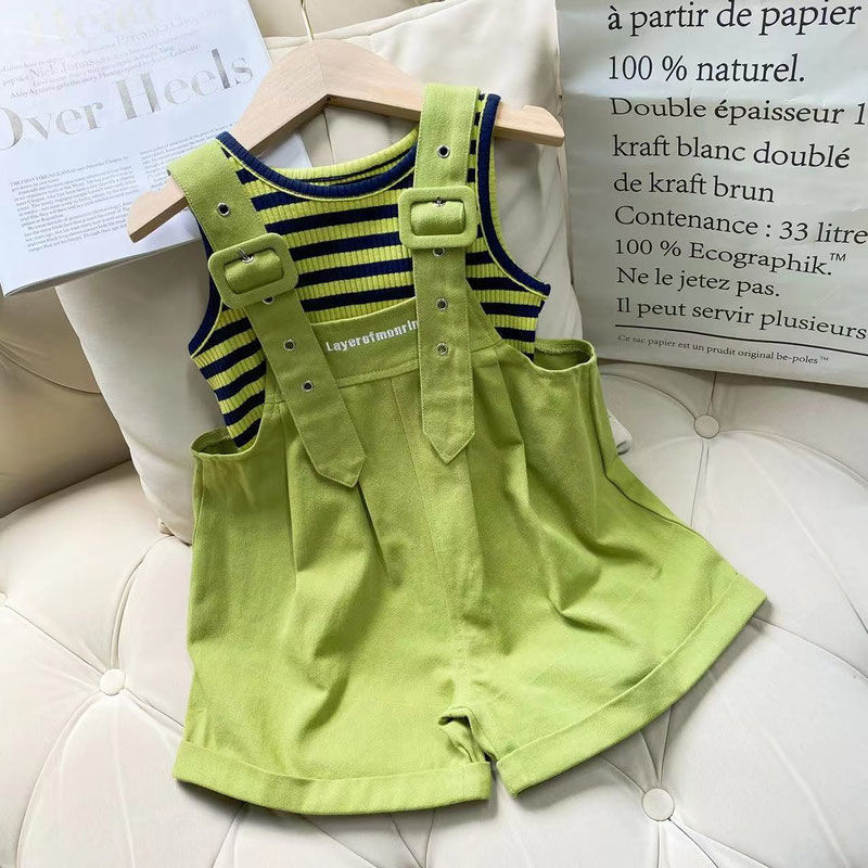 | nameOriginal | Girls' Strap suit Summer 2024 Summer New Children's Stylish Short-sleeved Vest Girls' Pants Two-piece Set |