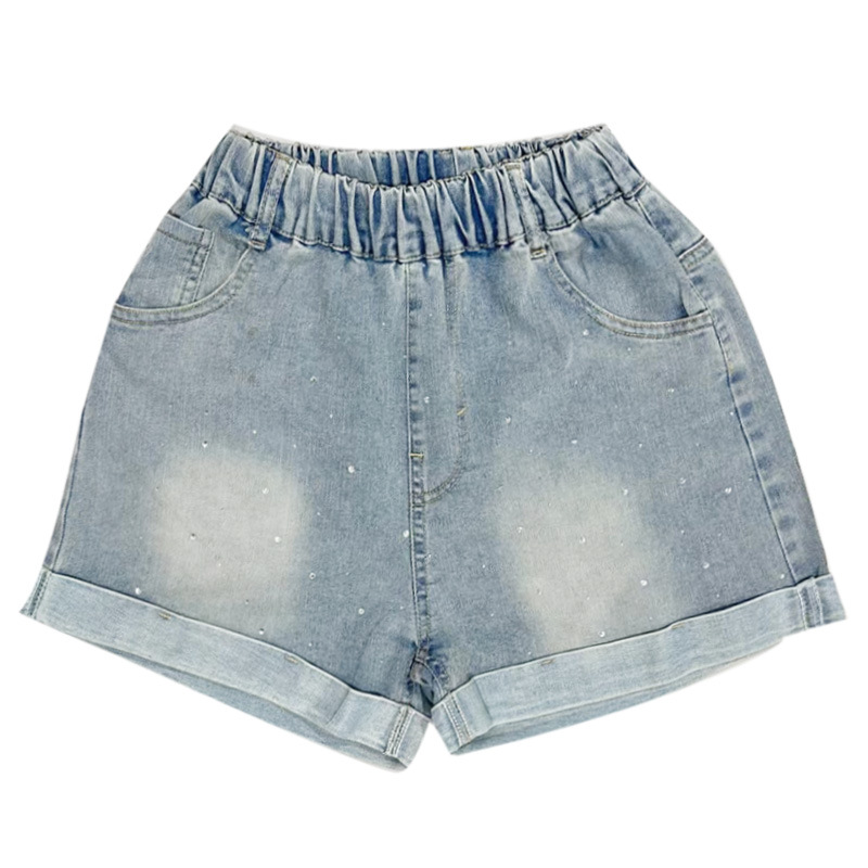 | nameOriginal | Girls' Stretch Hot Rhinestone Denim Shorts 2024 Summer New Korean Style Middle and Big Kids Loose Sports Thin Trendy Pants |