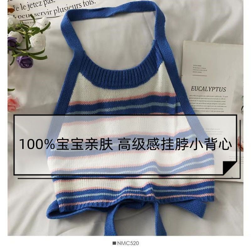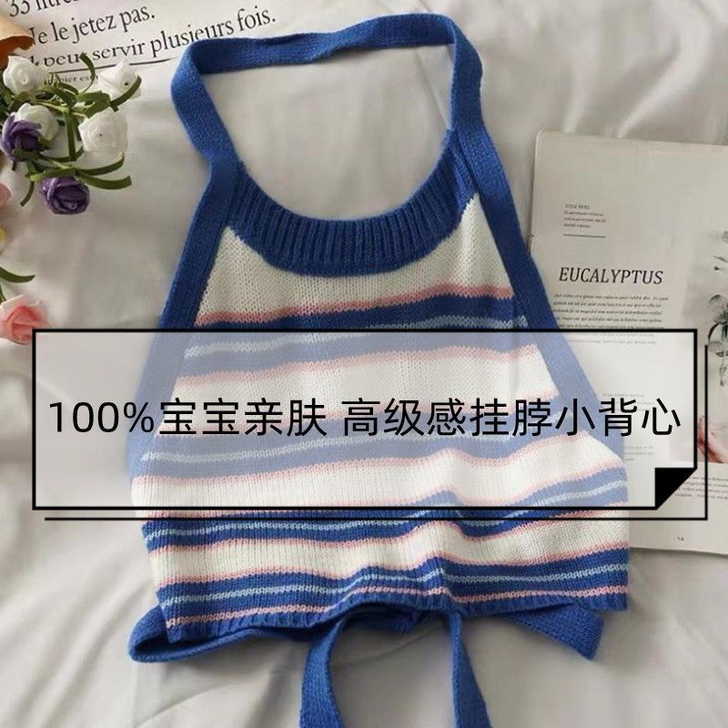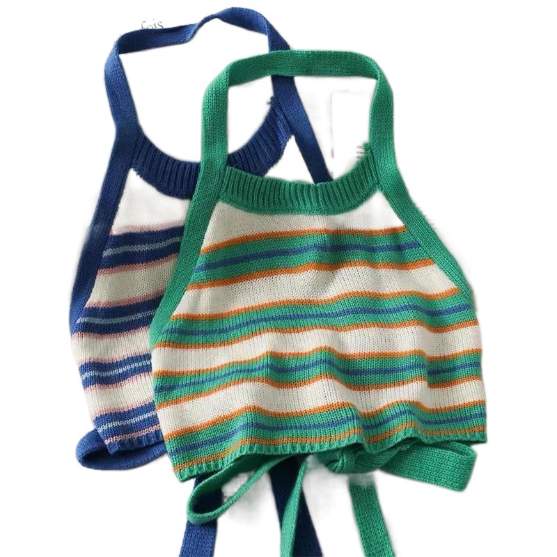 | nameOriginal | Girls' Striped Short Navel Hanging Neck Knitted Small Vest Children's Neck Hanging Back Bow Lace Korean Sling |