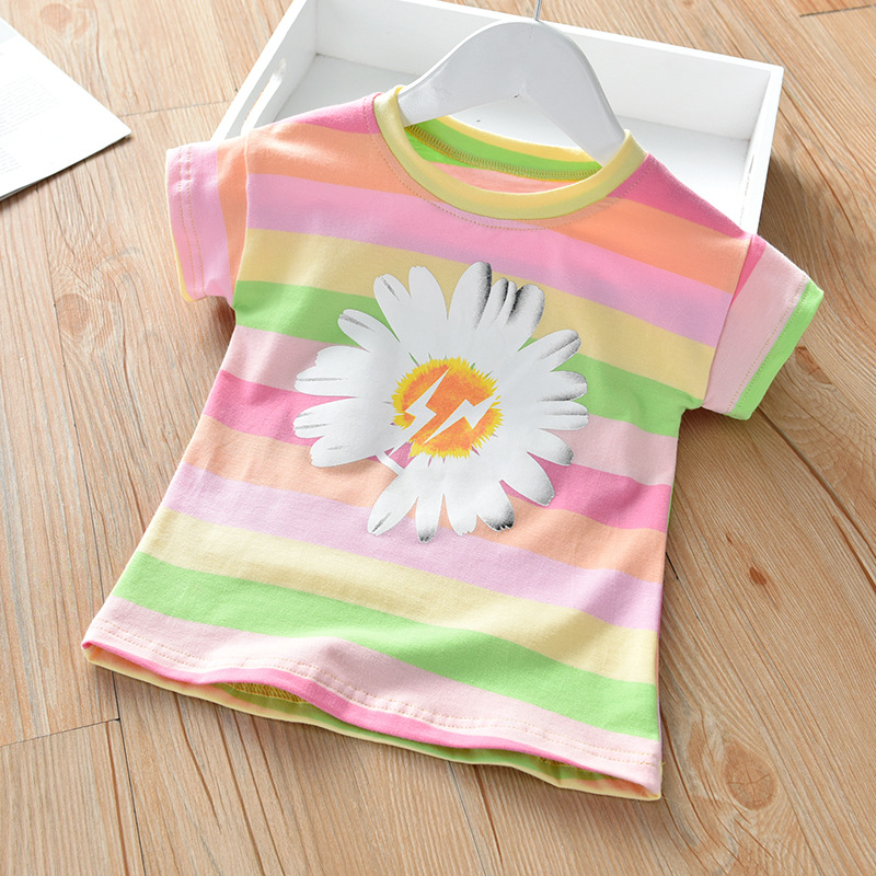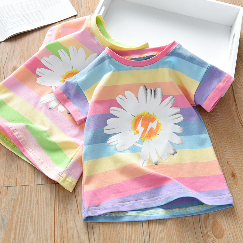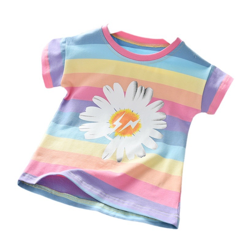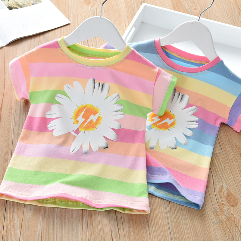| nameOriginal | Girls' striped short-sleeved bottoming shirt children's summer Daisy half-sleeved rainbow T-shirt baby girls' Western style all-match T-shirt |