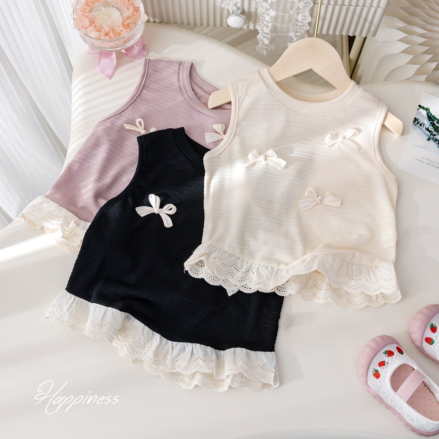 | nameOriginal | Girl's Stylish Three-Dimensional Bow Vest Korean Style Fashionable Lace Sleeveless T-Shirt Baby's Summer All-Match Top Trendy |