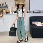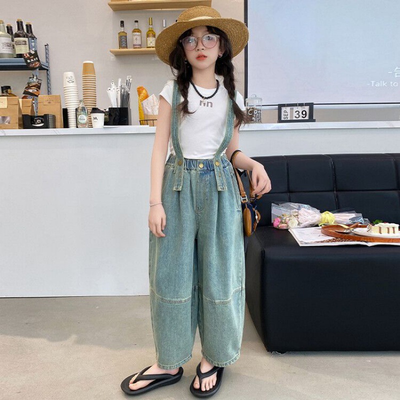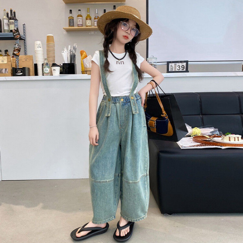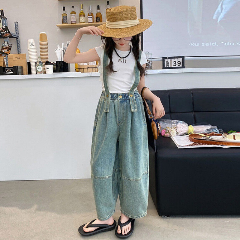| nameOriginal | Girls' Suit 2024 New Short-sleeved Top Western Style Fashionable Strap Jeans Girls' Two-piece Set |
