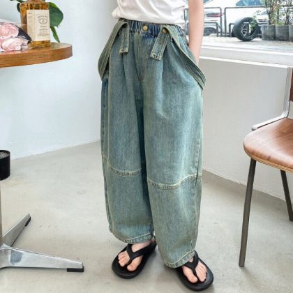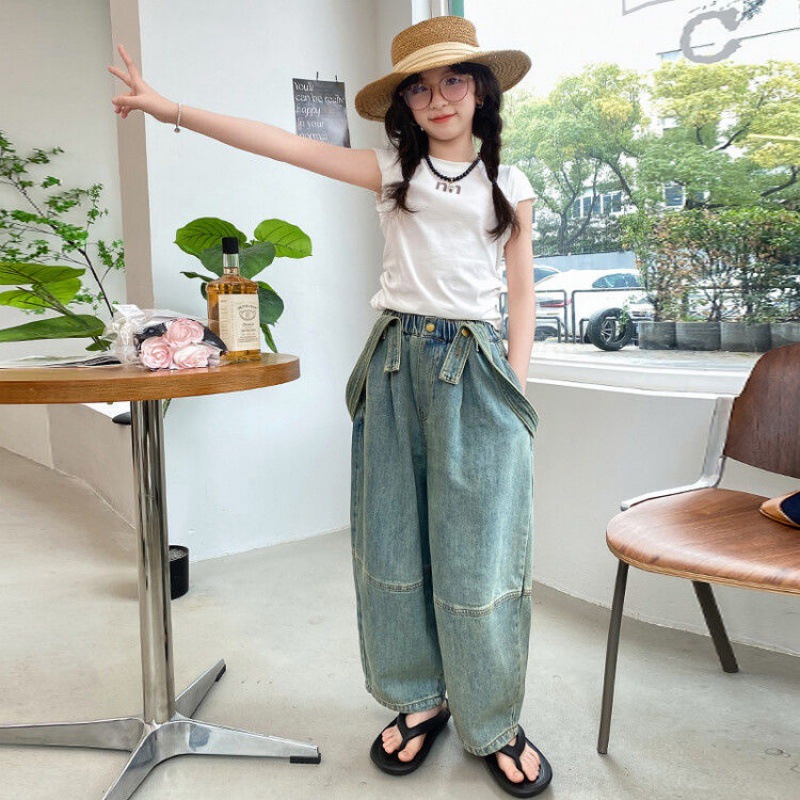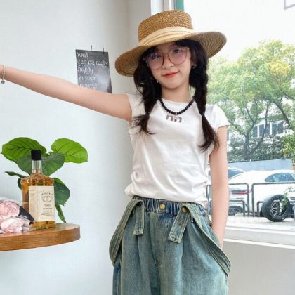 | nameOriginal | Girls' Suit 2024 New Short-sleeved Top Western Style Fashionable Strap Jeans Girls' Two-piece Set |
