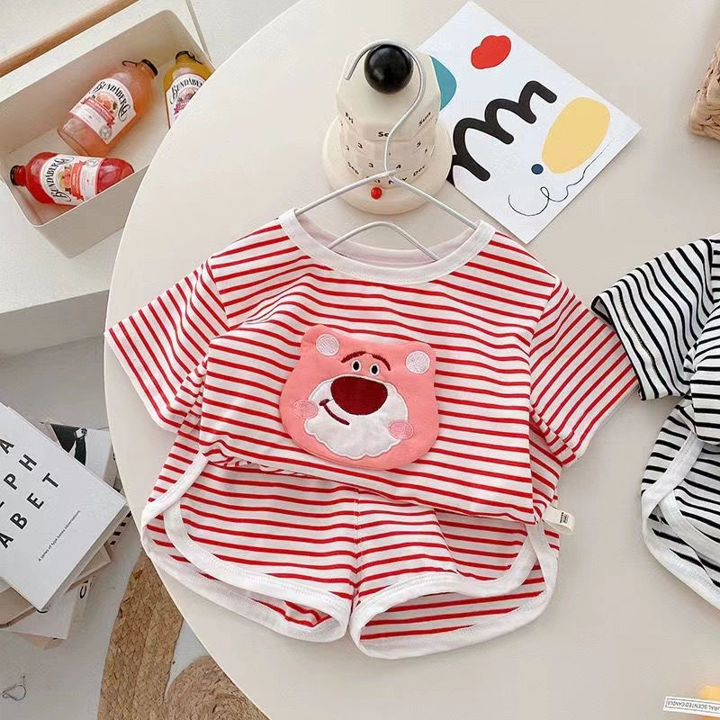 Girls suit new 2024 summer thin letter short-sleeved shorts baby casual Korean style pure cotton two-piece set trendy