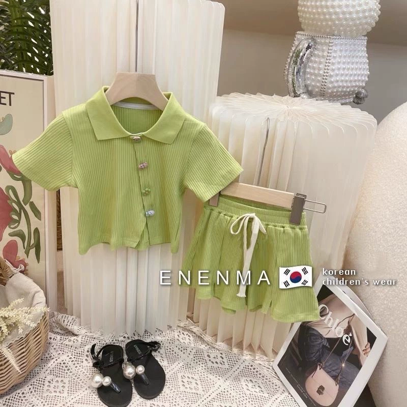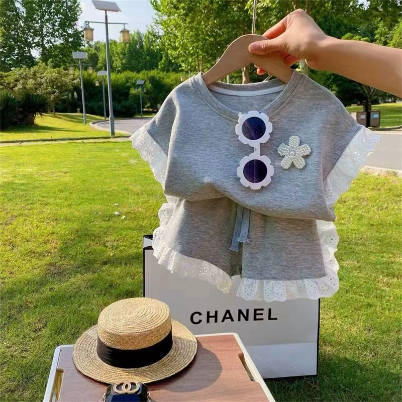Girls Set new 2025 summer thin letters short -sleeved shorts Baby casual Korean version of cotton two -piece tide