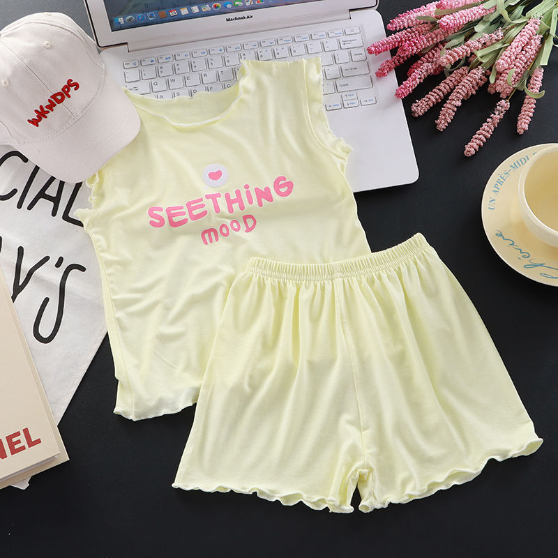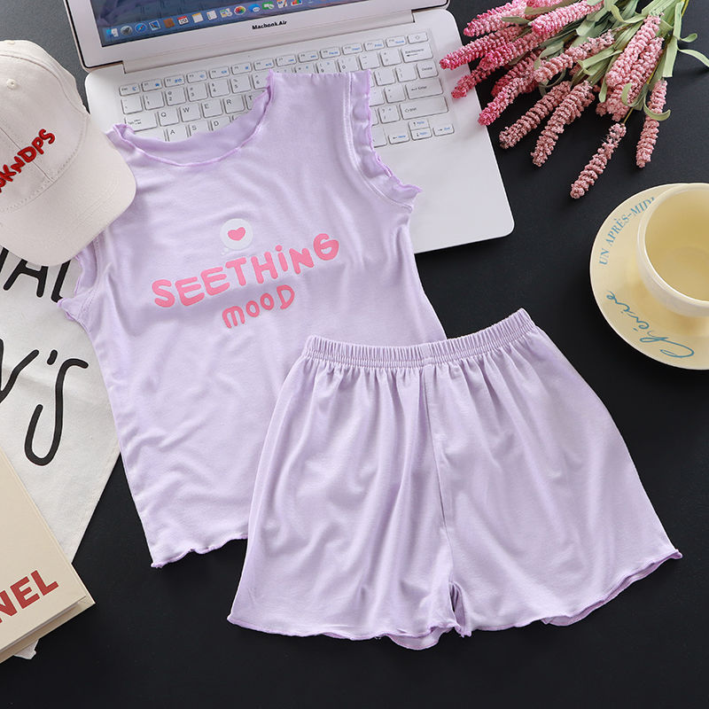 Girls' suit New Children's Home Clothes Baby Pajamas Summer Thin Air-conditioning Clothes Two-piece Short-sleeved Shorts Trendy