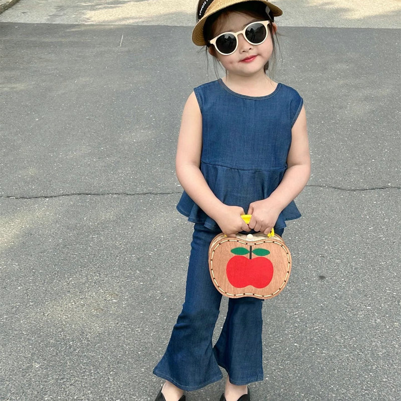 | nameOriginal | Girls' suit single-breasted Denim top plus flared pants 2024 Summer new foreign trade children's clothing Generation 3-8 years old |