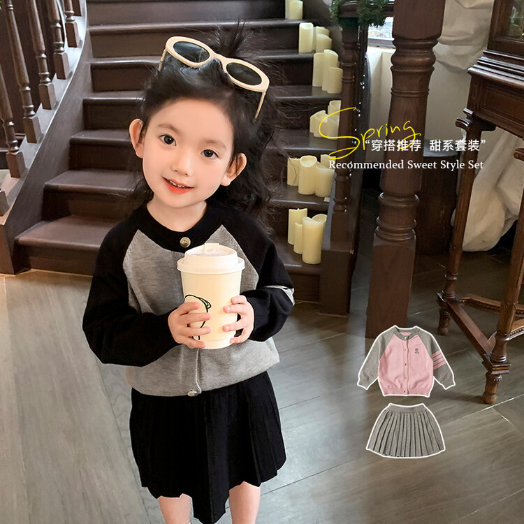 | nameOriginal | Girls suit Spring and Autumn Sweater Pleated Skirt Two-piece Set Fashionable Western Style 2024 New Pleated Skirt Cardigan suit |
